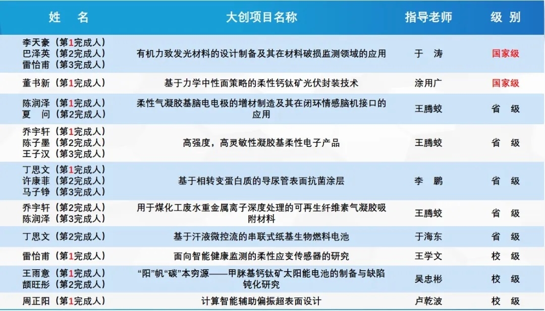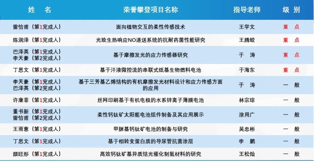 作为BEAT365英国官网首届柔性电子学本研衔接班学生,班级同学利用学校多体系交叉课程资源和多样化科技创新平台,积极参加各类创新创业竞赛。入学以来,班级同学累计参与科创项目32人次,科创项目参与率100%。