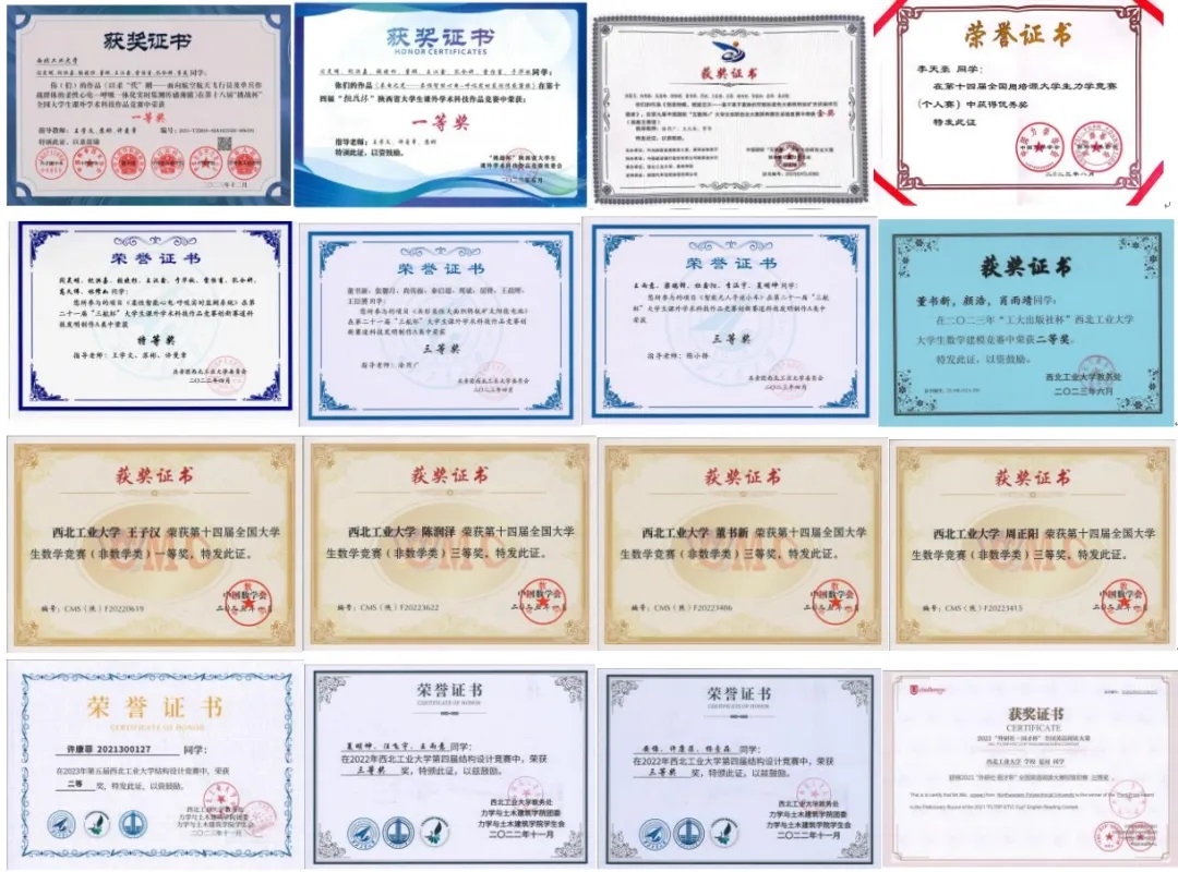 董书新同学获得中国国际大学生创新大赛(2023)国赛金奖;雷怡甫同学获得第十八届“挑战杯”大学生课外学术科技作品竞赛国赛一等奖;王雨意同学获2022年第十七届全国大学生智能汽车竞赛中西部赛区四轮摄像头组二等奖;李天豪获第十四届全国周培源大学生力学竞赛(个人赛)优秀奖。截至目前,班级同学获得省部级以上竞赛奖励共12人次,其中国家级4人次,省部级8人次。通过竞赛的磨炼,同学们的创新思维、科研能力得到了极大提升。
