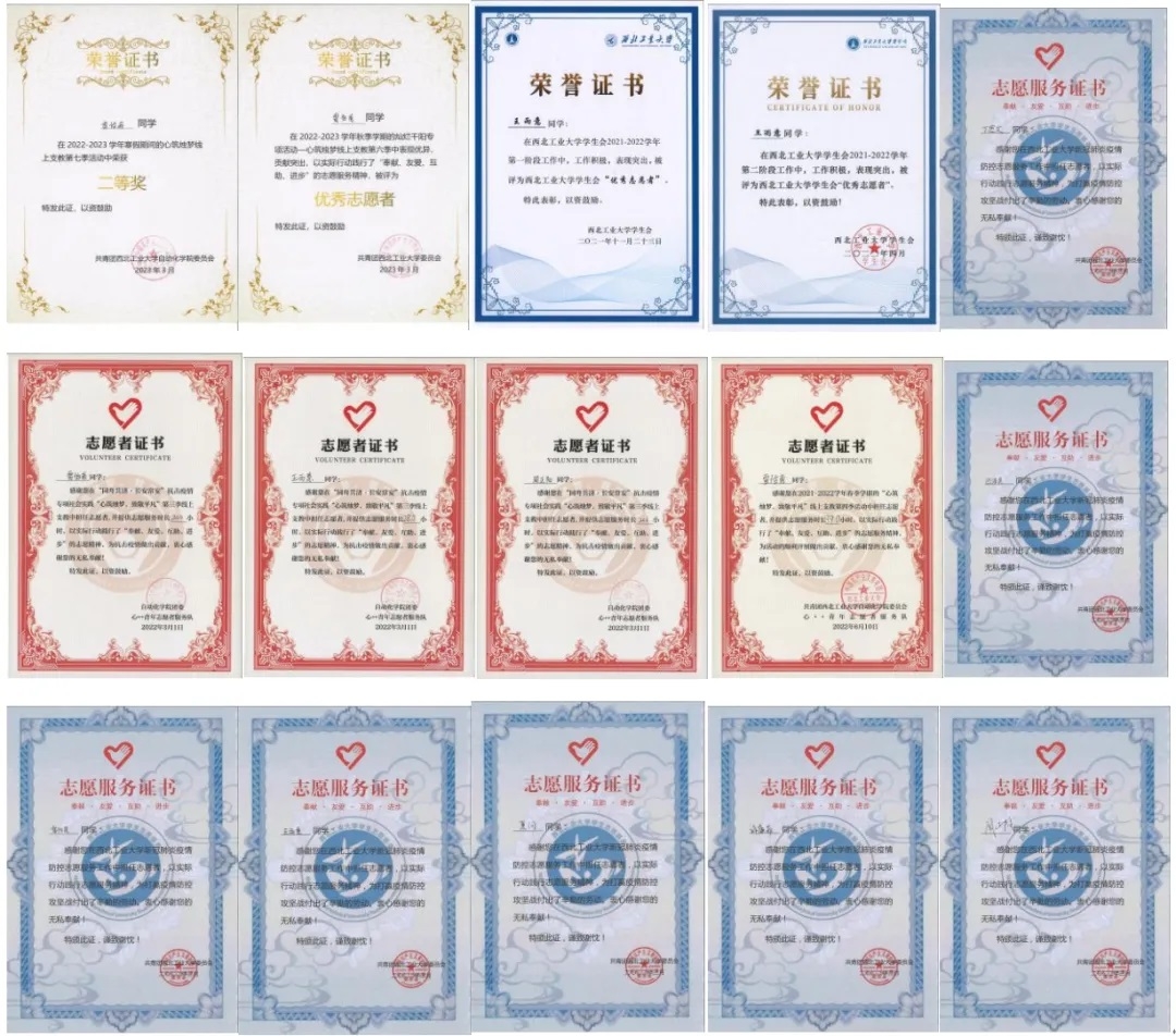 HC002106班部分荣誉证书