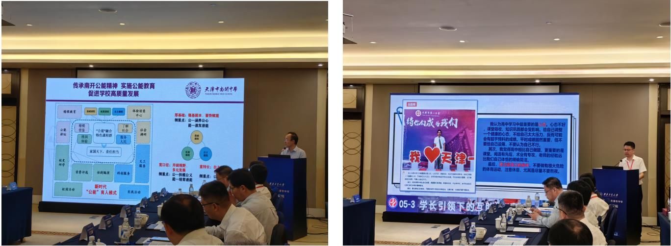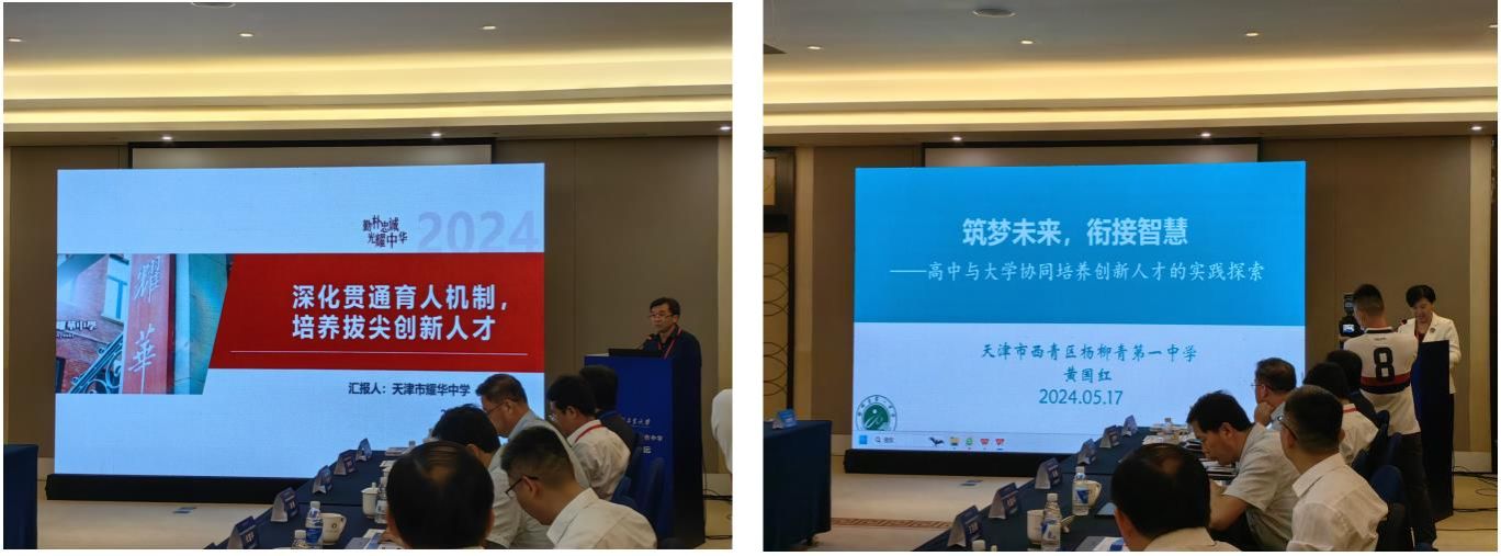 天津市南开中学校长刘浩、天津市第一中学副校长盛祥平、天津市耀华中学副校长闫林、天津市杨柳青第一中学党总支书记黄国红分别做了题为“传承南开公能精神,培养拔尖创新人才”、“因材施教是创新人才培养的底层逻辑”、“深化贯通育人机制,培养拔尖创新人才”以及“筑梦未来,衔接智慧—高中与大学协同培养创新人才的实践探索”的专题报告。