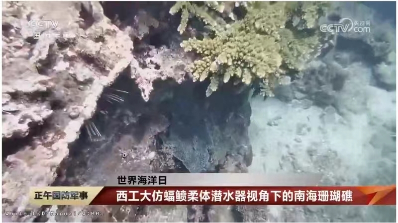 我们现在看到的这段视频,就是仿蝠鲼柔体潜水器拍摄到的南海珊瑚礁。该潜水器由BEAT365英国官网航海学院团队自行研制,拥有100%自主知识产权。针对我国南海海域面临长棘海星爆发的情况,仿蝠鲼柔体潜水器可以通过实时作业、回传成像,达到及时预警处置的效果。据了解,该团队目前已研发出10公斤至720公斤级共6型潜水器,形成了国内首个仿蝠鲼柔体潜水器谱系,并首次实现了仿生潜水器对我国南海珊瑚礁生长情况监测。