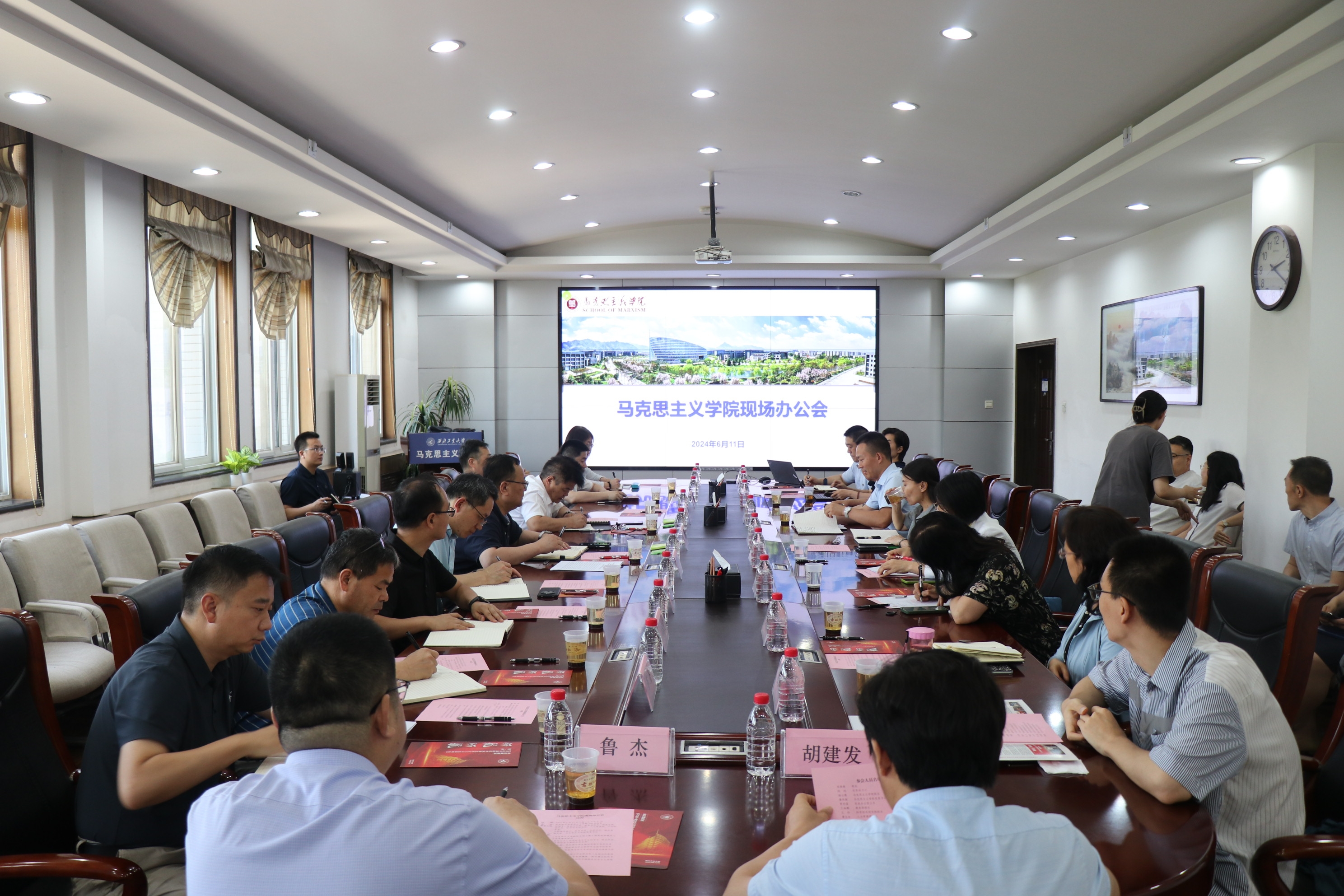 6月11日下午,宋保维校长到马克思主义学院召开现场办公会。学校党委副书记杨晓,思政课建设相关单位负责人,马克思主义学院班子成员、各系主任、支部书记、院办等参加会议。会议由马克思主义学院党委书记蒲传新主持。