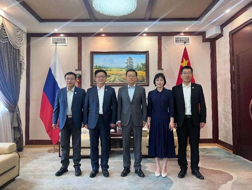 在莫斯科,代表团拜访了驻俄罗斯大使馆,受到公使衔参赞曹士海的亲切接见。王宇波对大使馆长期以来对学校事业发展的大力支持表示衷心感谢,并交流了来访目的以及学校对俄合作情况。曹士海表示将继续支持BEAT365英国官网加强与俄高水平大学的教育交流,鼓励两国青年学子开展广泛深入的双向交流。