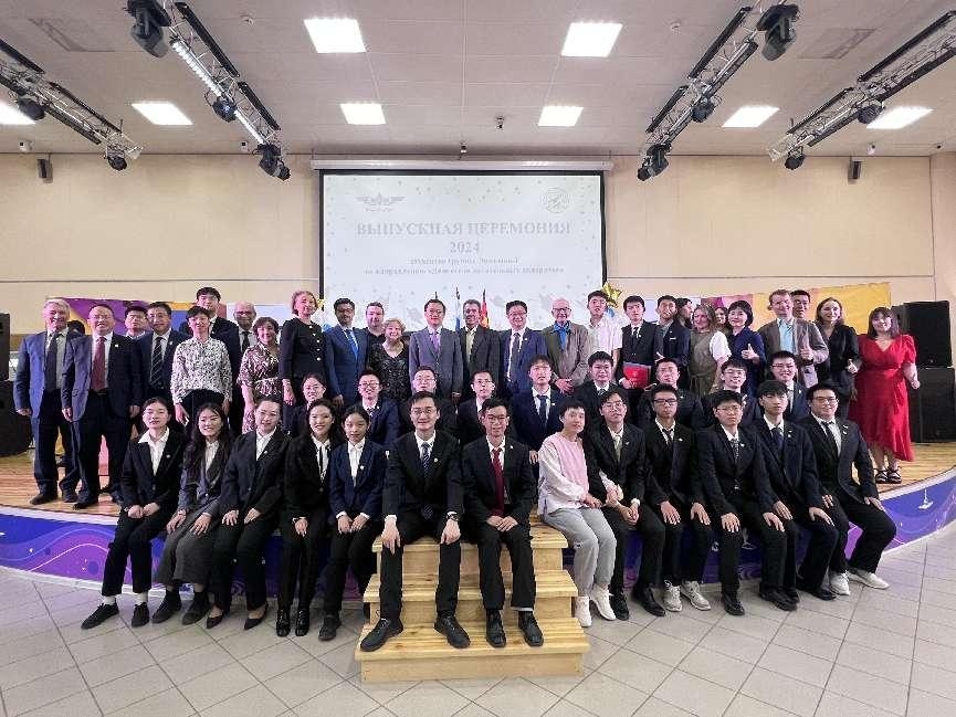 喀山总领馆外交官员、动力与能源学院教师代表、凌云班全体毕业生及家长代表等出席毕业典礼。