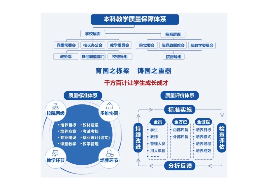 党的二十届三中全会审议通过的《中共中央关于进一步全面深化改革、推进中国式现代化的决定》提出“教育、科技、人才是中国式现代化的基础性、战略性支撑”,并对深化教育综合改革作出系列部署,要跳出教育看教育,跳出教育干教育,跳出教育评教育。学校始终坚持落实立德树人根本任务,坚持将人才培养与国家战略需求紧密融合,以凝聚质保共识、提升育人实效为牵引,以认证为契机,以校内自评为发力点,不断以评促建、以评促强,为实现学校“127”目标和“总师型”人才培养质量的持续提升提供源源不断的动力。