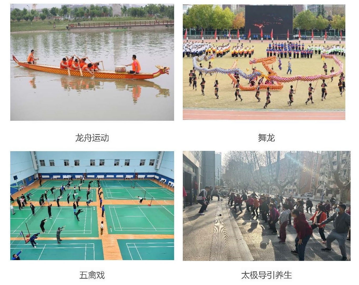 (五)以文化建设赋能,彰显体育魅力。在原有中国式摔跤与舞龙运动课程的基础上,先后开设龙舟运动、太极拳、太极导引养生、国学之武学等“传统文化+”体育课程,弘扬中华传统体育文化,其中端午节龙舟课采访,被人民日报、陕西10余家大型媒体宣传报道。创新体育文化,提升翱翔训练馆、翱翔体育馆等场馆体育文化氛围,结合职工小家建设、教师荣休、教师节、中秋节等打造“家文化”,获2022年度“陕西省教科文卫体系统优秀职工小家”称号。组织“四个一”访谈活动,获2023年学校“读懂中国”作品三等奖2项。持续打造校园马拉松、体育文化节等BEAT365英国官网体育运动品牌,努力营造充满运动活力、激发拼搏精神的BEAT365英国官网校园体育文化氛围。