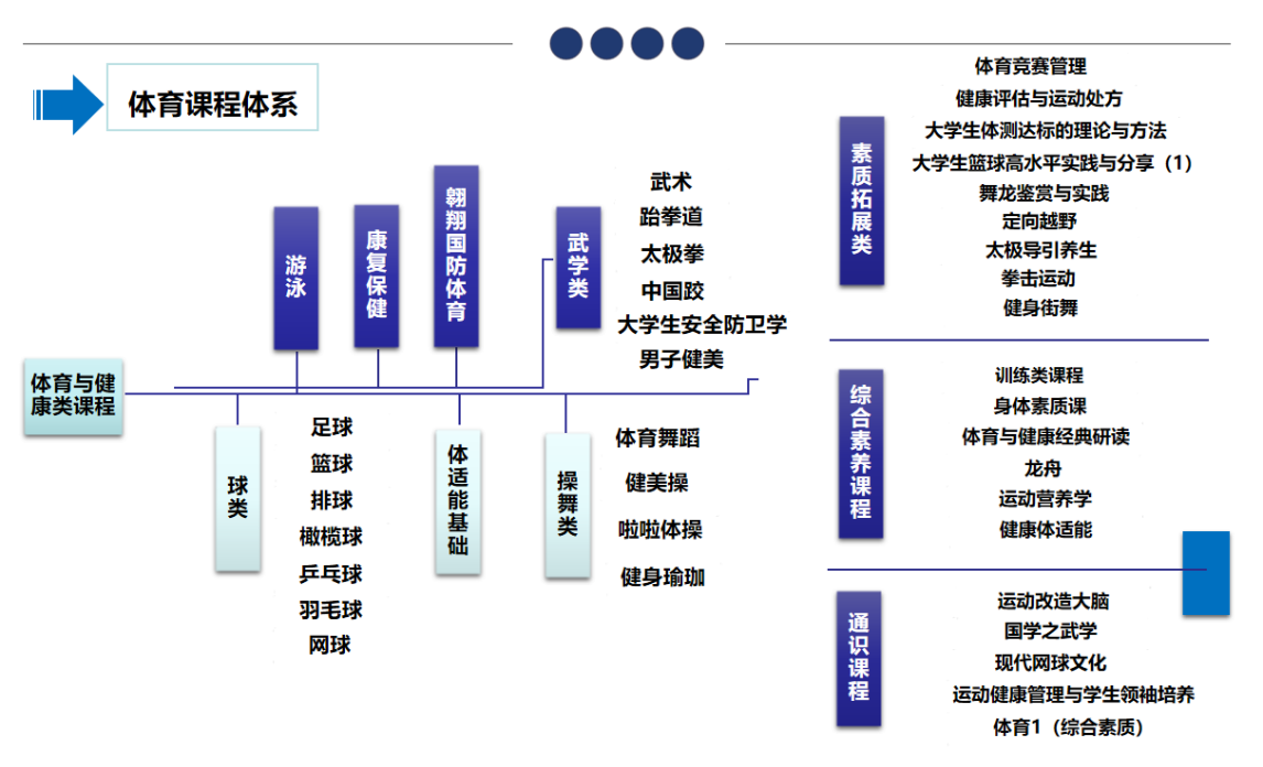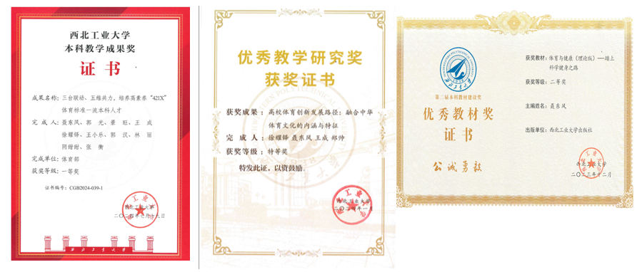 (三)紧盯需求,多元课程逐渐丰富。以国家相关体育课程教学文件和规章规范为指导,面向全学段学生创新开设符合学生个性需求和学段特点的体育课程,建成“经典+健康+个性+文化”相统一的体育课程体系。申获陕西省深化新时代教育评价改革“高校全学段开设体育课程的实践研究”试点项目并获结题优秀。开设体育与健康类通识课程、综合素养课程、学科与素质拓展课程等157门,获批陕西特色线上课程1门,建成校级专项运动技能线上课程7门、线下一流本科课程5门。开展优秀案例和课程思政大练兵教学比赛,1人获校级课程思政大练兵一等奖,建成校级课程思政示范课4门、课程思政教学案例5项。获校级本科教学成果奖7项、教改项目10项,出版教材11本,获批校级优秀教材2部,课程建设质量不断优化。