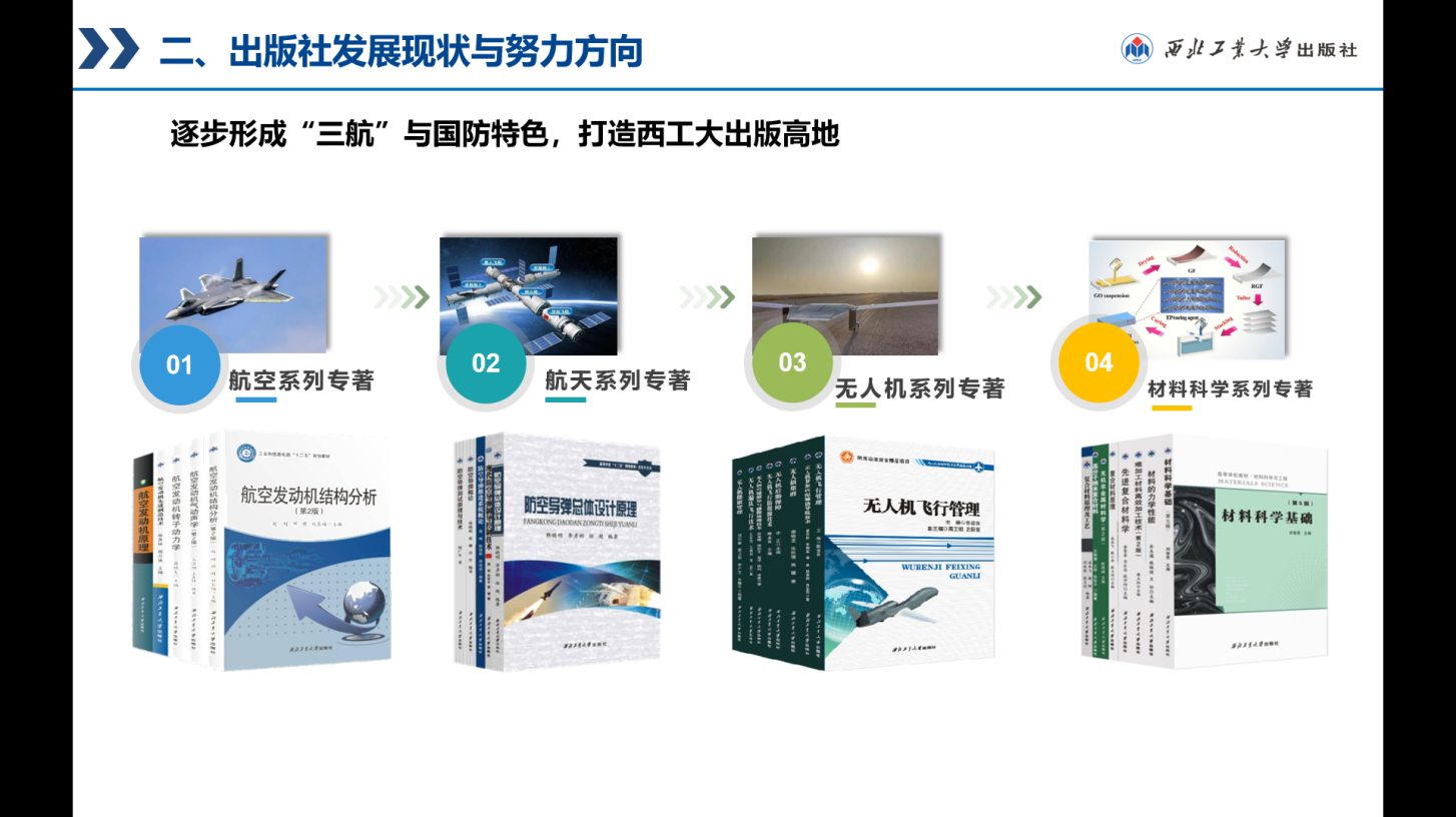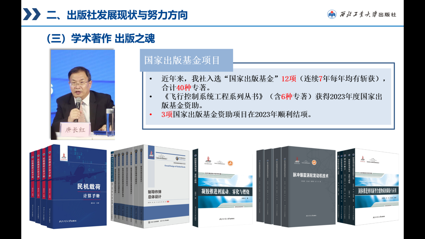BEAT365英国官网出版社依托学校优势学科,主动对接国家战略,服务科技前沿,为国防科技发展和人才培养贡献出版力量。近年来,聚焦航空航天领域获批“国家出版基金”12项(连续7年每年均有斩获),合计40种专著。《飞行控制系统工程系列丛书》(含6种专著)获得2023年度国家出版基金资助。唐长红院士主持的《民机载荷计算手册》、樊会涛院士主持的《现代空空导弹前沿技术丛书》及《脉冲爆震涡轮发动机技术》等完成基金验收。出版社《空天推进技术系列丛书》2个项目19本图书入选“十四五”重点出版物出版规划。