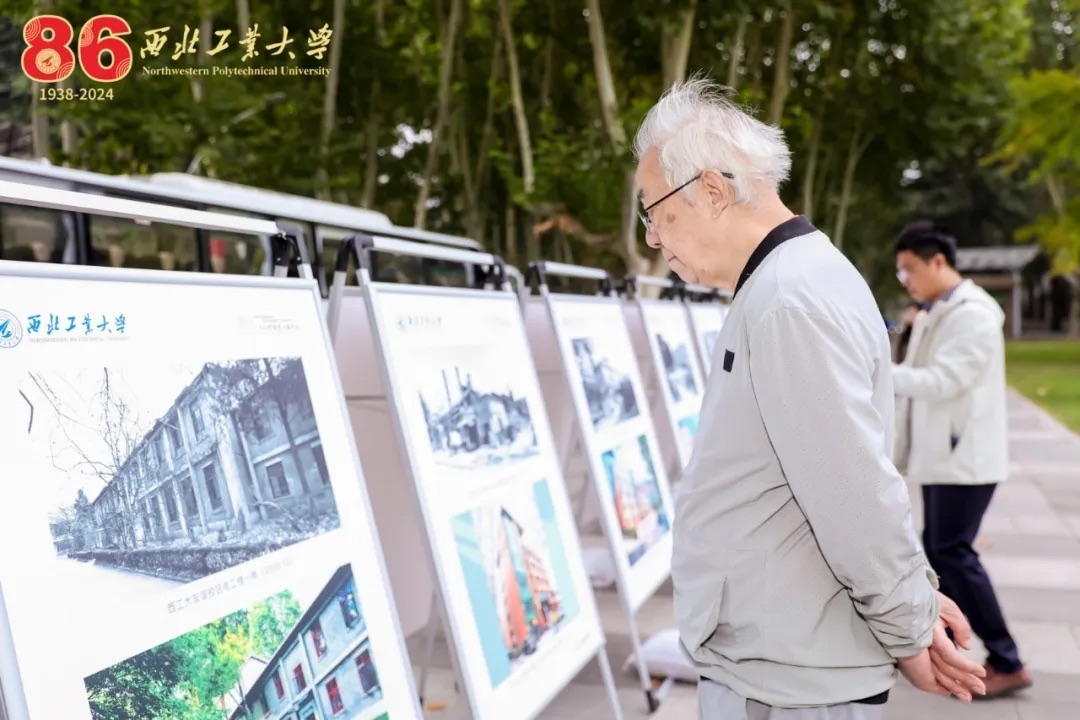 长安校区,校友们围绕军工素质教育实践中心(博物馆)、启翔湖、启真楼、何尊广场等参观,感受巍巍终南下,高冠河环绕的大美校园。