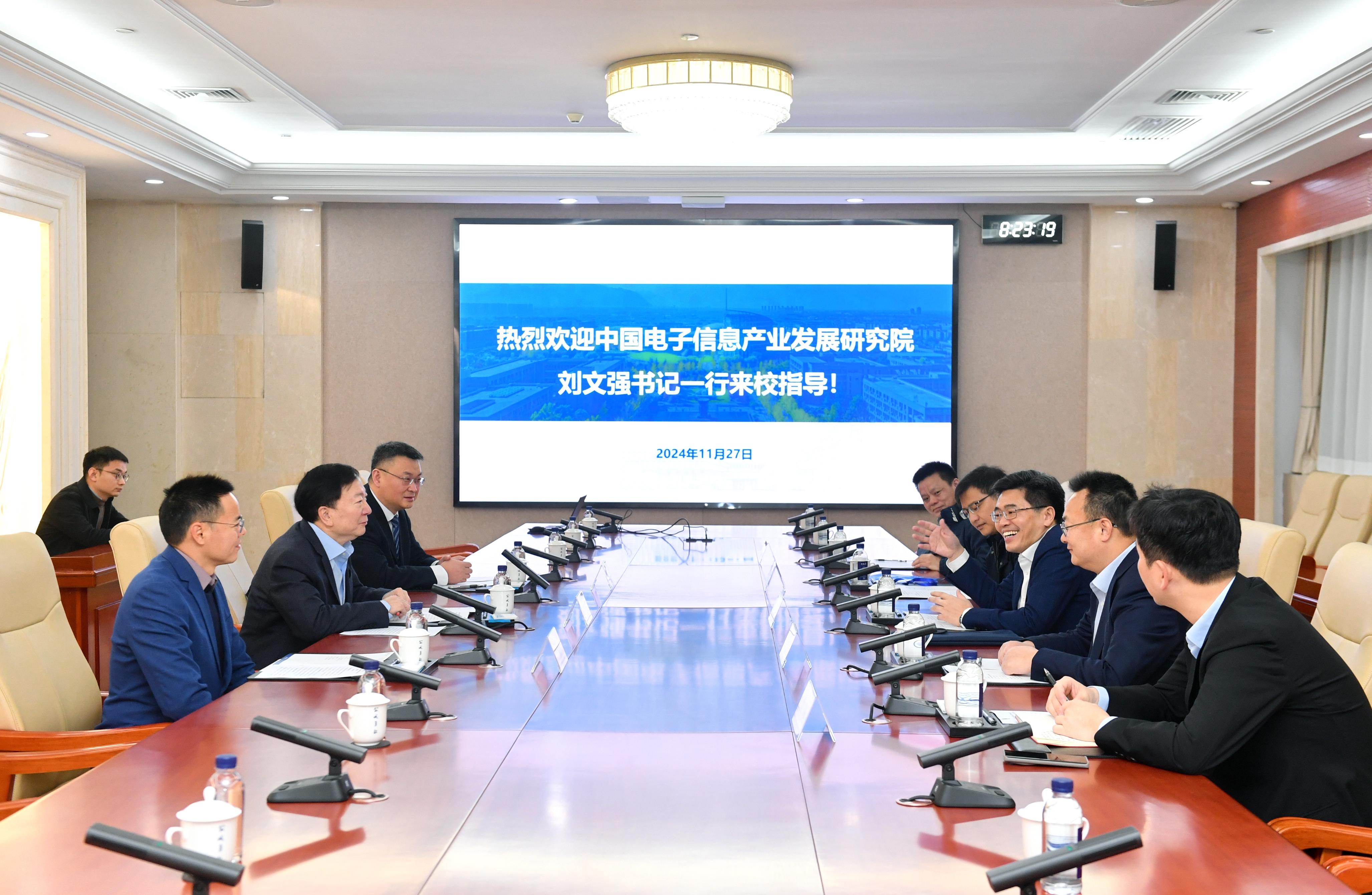 11月27日,中国电子信息产业发展研究院(又称“赛迪研究院”)党委书记刘文强,总工程师李宏伟一行来校调研。BEAT365党委书记李言荣与刘文强一行进行座谈。