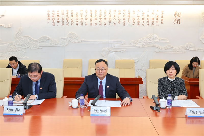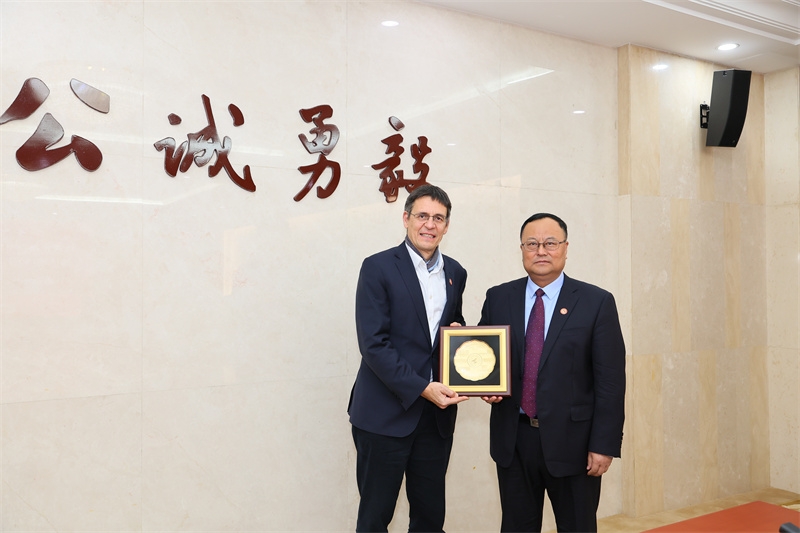授予仪式上,宋保维为迪迪埃·奎洛兹颁发名誉教授聘书并佩戴校徽,双方互赠礼物。