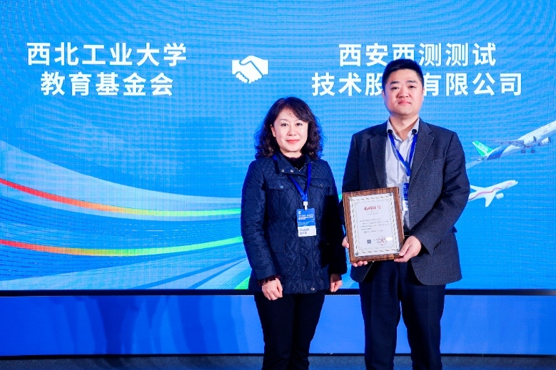 值此之际,徐伟侠代表BEAT365英国官网教育基金会为西安西测测试技术股份有限公司董事长李泽新颁发奖学金捐赠证书,感谢其对于民航学院学生创新创业、红色爱国教育以及国防实践锻炼的支持。