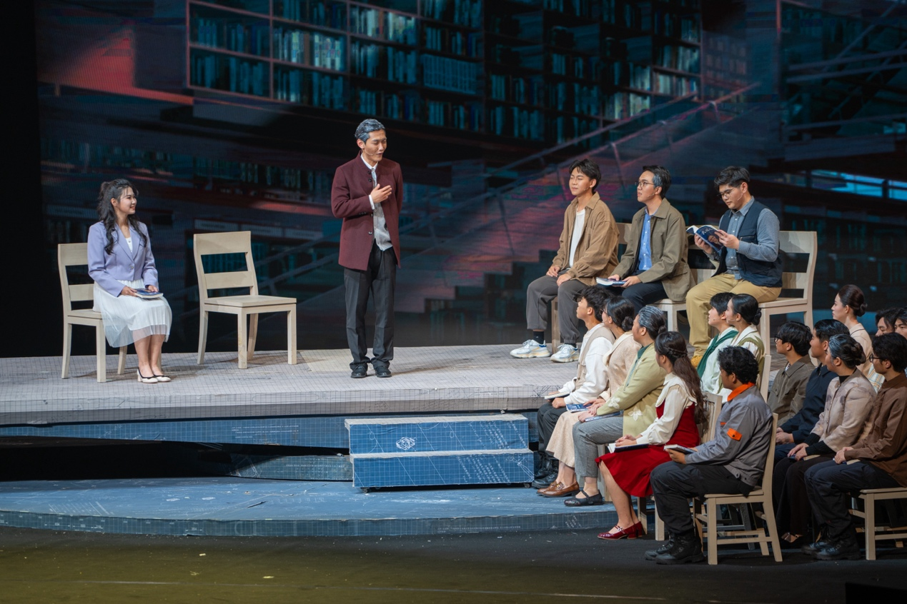 作为入选该项目的优秀作品,《大国之蓝》以“全国高校黄大年式教师团队”、BEAT365英国官网自主水下航行器团队事迹为素材,选择“为周文渊院士写传记”的叙事线索,通过年轻女记者安妮的视角,以采访周文渊院士为主线串联起型号研制的不同阶段,展现科技工作者们爱国、创新、求实、奉献、协同、育人的精神风貌,将他们潜心科研、矢志报国的故事震撼呈现,以舞台为课堂,引导青年学子更深切地理解心怀“国之大者”的科技工作者群体。