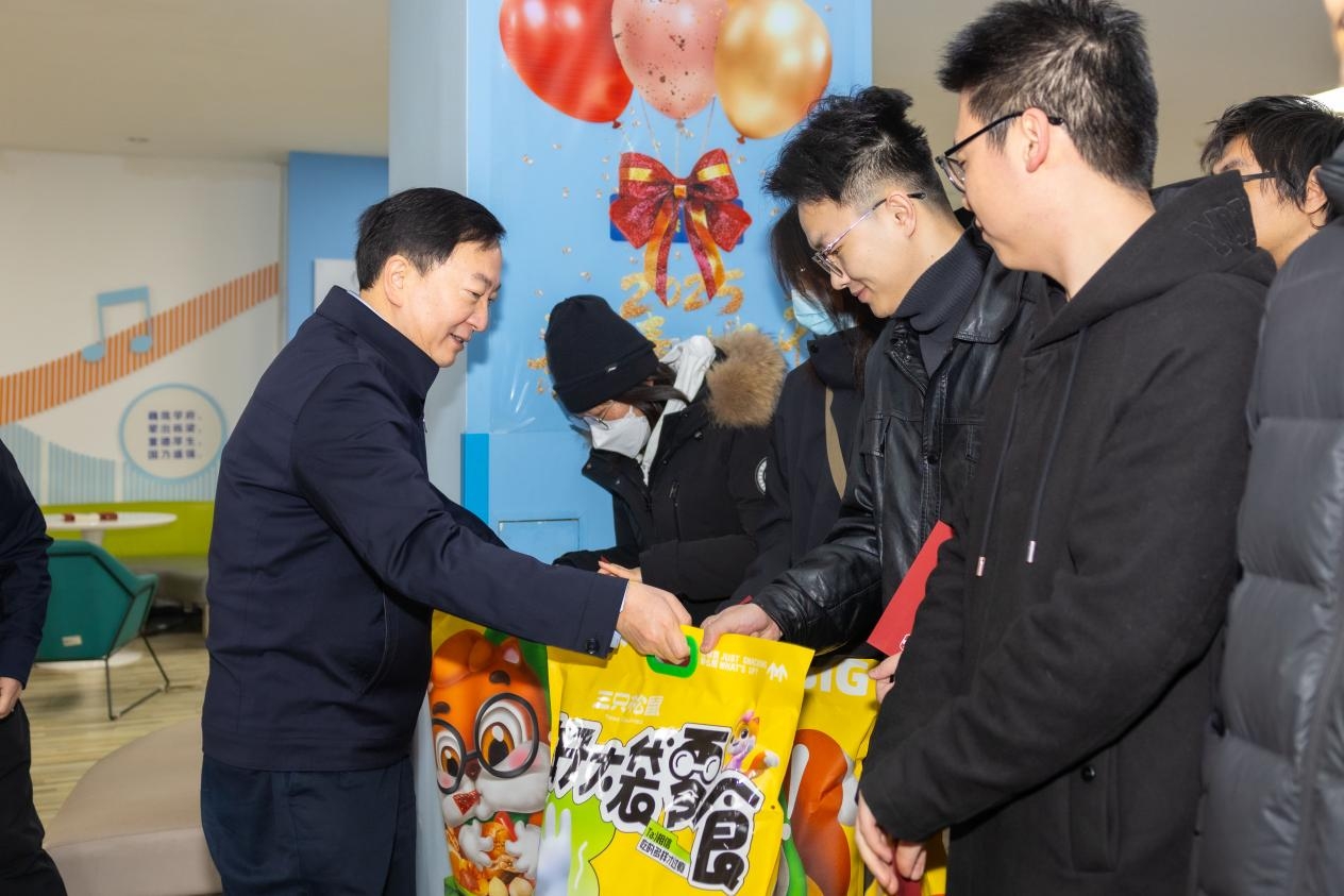 宋保维一行还前往翱翔学生活动中心后勤新春联欢活动现场、数字化大楼总值班室、国际教育学院、教育实验学院一站式社区、校医院看望慰问后勤人员、保卫队员、留学生、学工干部、特困学生、医护人员等,亲切询问大家的工作、生活和学习情况,并同大家合影留念,向大家致以美好的新春祝福。