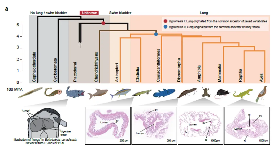 研究团队2021年在《CELL》杂志发表的研究显示,肺与鱼鳔同源,至少在硬骨鱼祖先中初现雏形,并早于泥盆纪早期脊椎动物登陆事件。另一方面,一些化石记录、发育模式和分子数据则暗示,肺可能起源于软骨鱼与硬骨鱼的共同祖先,但其具体起源节点仍未明确。为了解开肺脏进化之谜,团队对多种动物的肺组织进行了广泛而细致的研究。