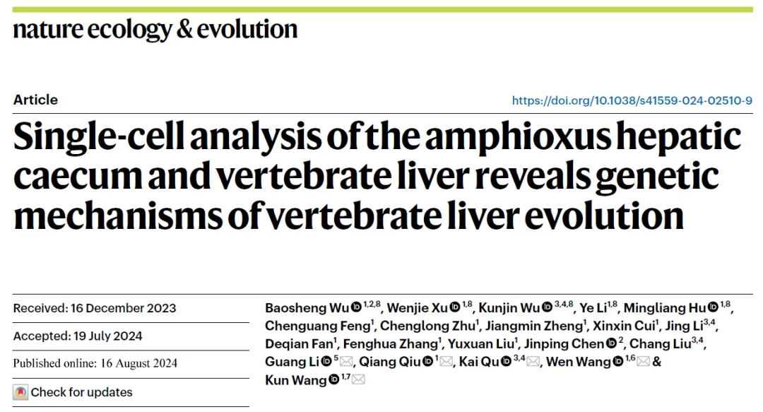 器官的起源和演化一直是生命科学领域最为基础而又充满挑战的科学问题之一。《Nature Ecology & Evolution》(《自然·生态与进化》)期刊连续发表了该团队关于脊椎动物两个重要器官——肺脏和肝脏起源演化的研究成果,从基因和分子水平揭示了这些复杂器官是如何在演化过程中逐步形成的。