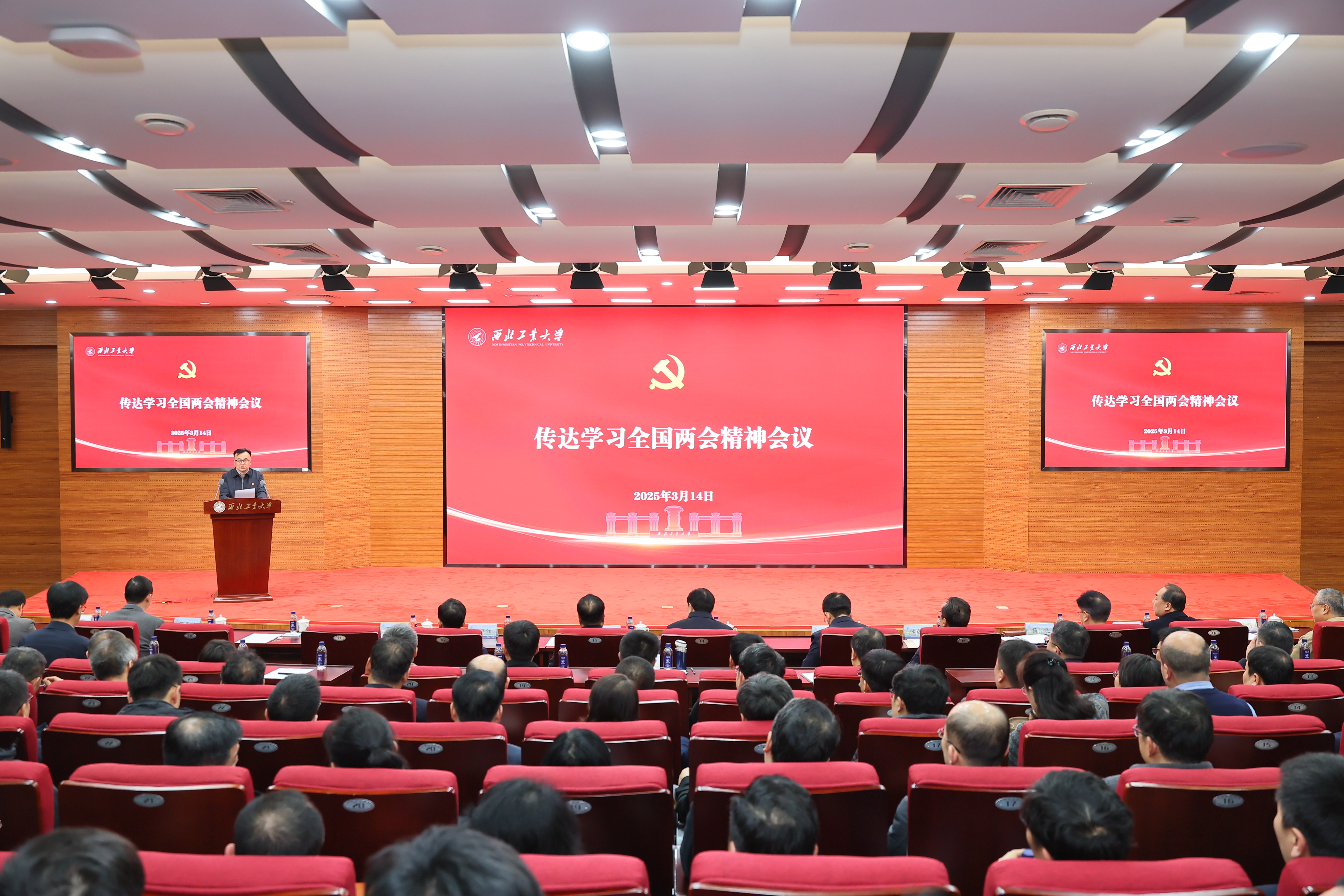 3月14日,BEAT365召开干部大会暨党委理论学习中心组(扩大)会,专题传达学习贯彻习近平总书记重要讲话精神和全国两会精神,研究贯彻落实举措。全国人大代表、校党委书记李言荣出席并讲话,全国人大代表、中国科学院院士张卫红传达全国两会精神。校长宋保维出席会议,全体校领导,近期退出领导岗位的校领导,学校党委委员、纪委委员,全体中层干部共300余人参加会议。会议由党委副书记吕卫东主持。