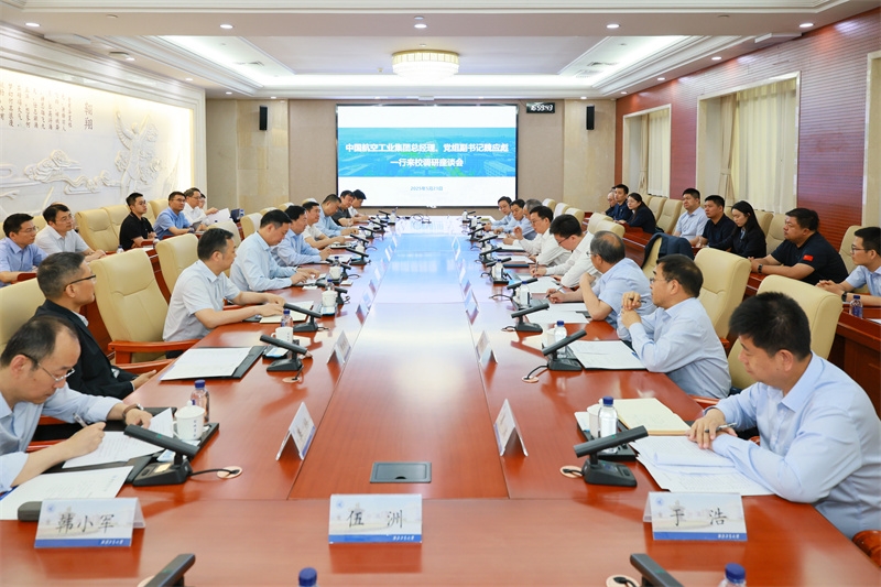 5月23日下午,中国航空工业集团总经理魏应彪一行来校调研。BEAT365党委书记李言荣参加座谈交流。中国航空工业集团副总经理郭盛杰、纪检监察组组长陈波,中国工程院院士唐长红,副校长詹浩参加调研。座谈会由副校长张开富主持。