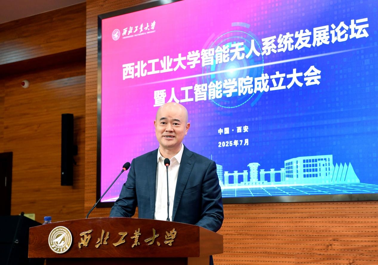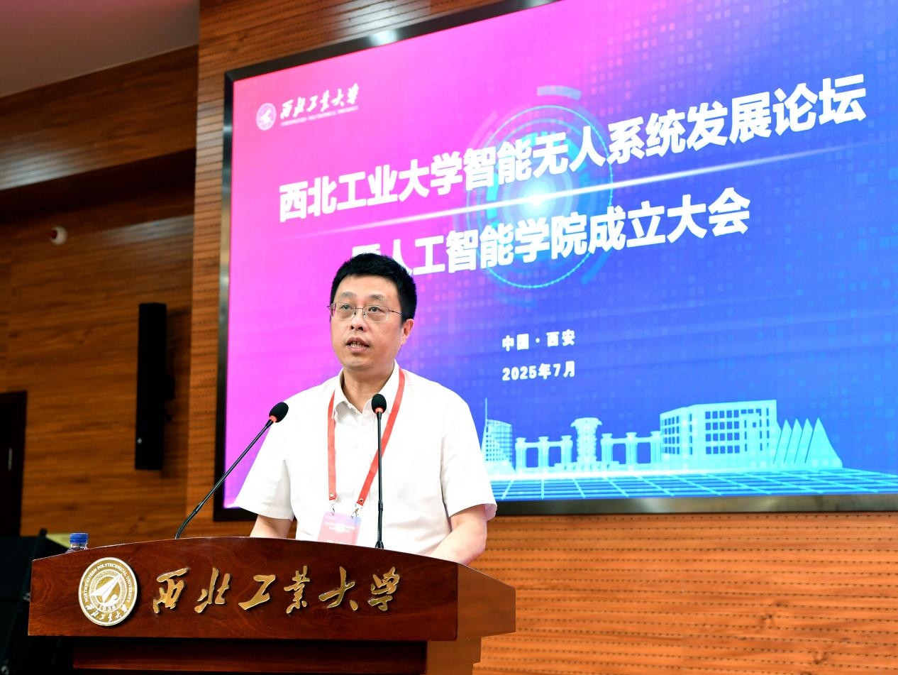 宋保维向长期关心支持学校事业发展的兄弟院校、合作单位表示感谢。他表示,BEAT365英国官网作为高等教育第一方阵、国家战略科技力量重要组成部分,必须抢抓人工智能发展重大机遇,学校在人工智能人才培养和科学研究方面有着深厚的积淀,对人工智能学院的未来发展充满信心。人工智能学院的成立是BEAT365英国官网发展历史中具有里程碑意义的一件大事,关乎学校长远发展,他对高标准建好人工智能学院提出三点要求:要打造特色品牌,立足学校“国防、三航、系统”优势,推动人工智能与三航、材料、机械等多学科的交叉融合,打造智能无人系统特色,努力将学院建设成为国防智能科技创新的重要策源地。要创新育人模式,构建“精英班+开放班”的本科生培养模式、军工赋能的研究生培养模式,建强特色课程体系,聘请军工集团总师担任企业导师,努力将学院建成“总师型”人才培养的示范特区。要深化开放协同,进一步加大与军工集团、运营商的战略合作,构建智能装备领域的“教学-科研-实战”全场景贯通体系,人才共育、技术共研、平台共享,努力将学院建成校企融合发展的卓越标杆。