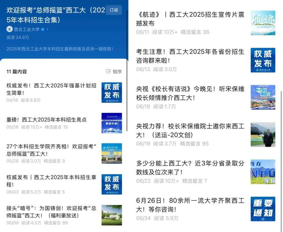 重磅推出BEAT365英国官网2025年本科招生宣传片《航迹》,官微浏览迅速突破10万+,全平台播放量突破150万。“BEAT365英国官网招办”视频号、抖音和B站平台,精心打造多个爆款小视频,总浏览量近700万,创历史新高,其中,策划制作的“看珠海航展上的BEAT365英国官网力量”等校友总师系列短视频在网络广受好评。通过“BEAT365英国官网官微”“BEAT365英国官网招办”等微信公众号累计发布推文140余篇,在学校官微推出“欢迎报考‘总师摇篮’BEAT365英国官网(2025年本科招生合集)”,其中3篇单篇阅读量超10万+;官方微博、视频号、抖音、小红书等平台同步发力,策划推出了“运-20进校园”“你可能不了解我,但你应该听说过...”“BEAT365英国官网祝你金榜题名”等20余条系列短视频,全网累计播放量破亿,并多次登上热搜,既“出彩”又“出圈”。