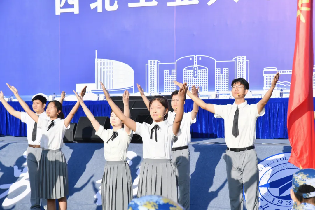 典礼开始前,还播放了开学典礼主题视频《星海•启航》,大学生艺术团联袂新生代表带来了歌舞表演《骄傲的少年》《灿烂的你》,点亮现场氛围,旗帜挥舞,青春涌动。