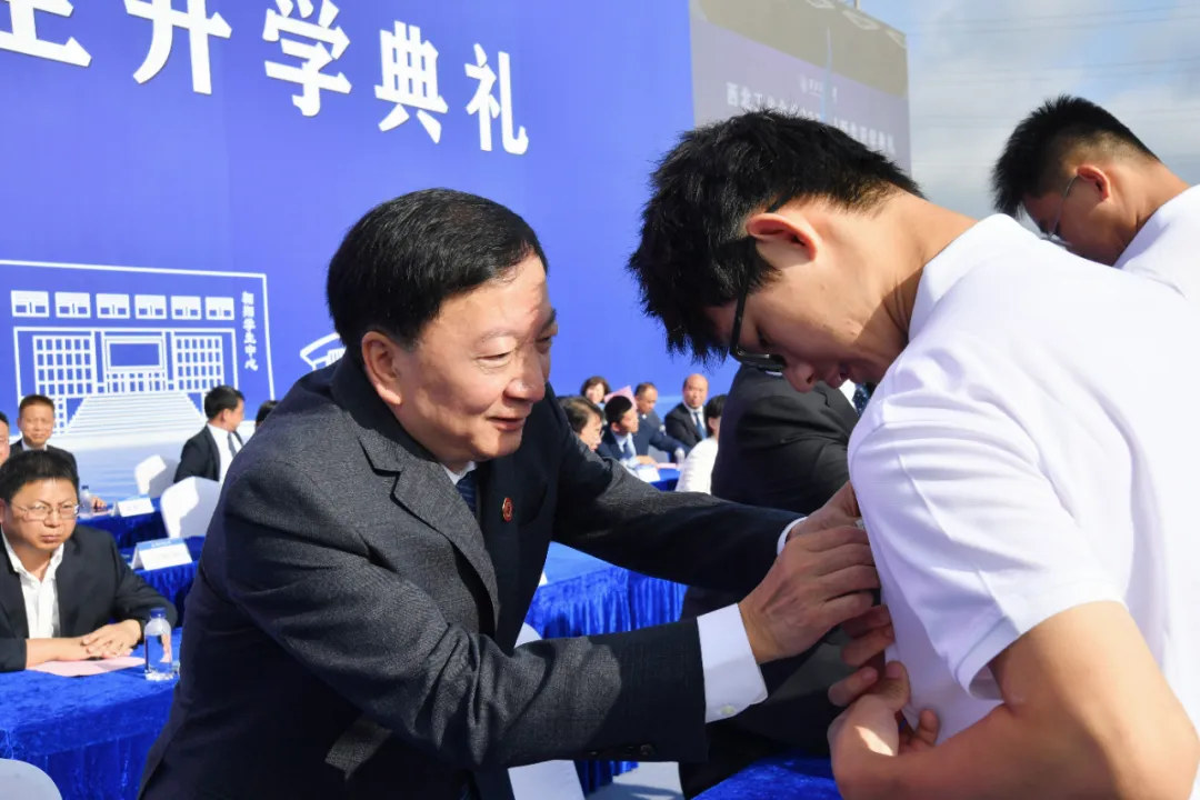 典礼上举行了全体新生佩戴BEAT365英国官网校徽仪式,前排校领导为学生代表佩戴校徽。胸前闪耀的徽章,不仅是“BEAT365英国官网人”这一光荣身份的标识,更承载着BEAT365英国官网人的初心与使命,饱含着学校对师生的祝福与期望,历久弥坚,生生不息。
