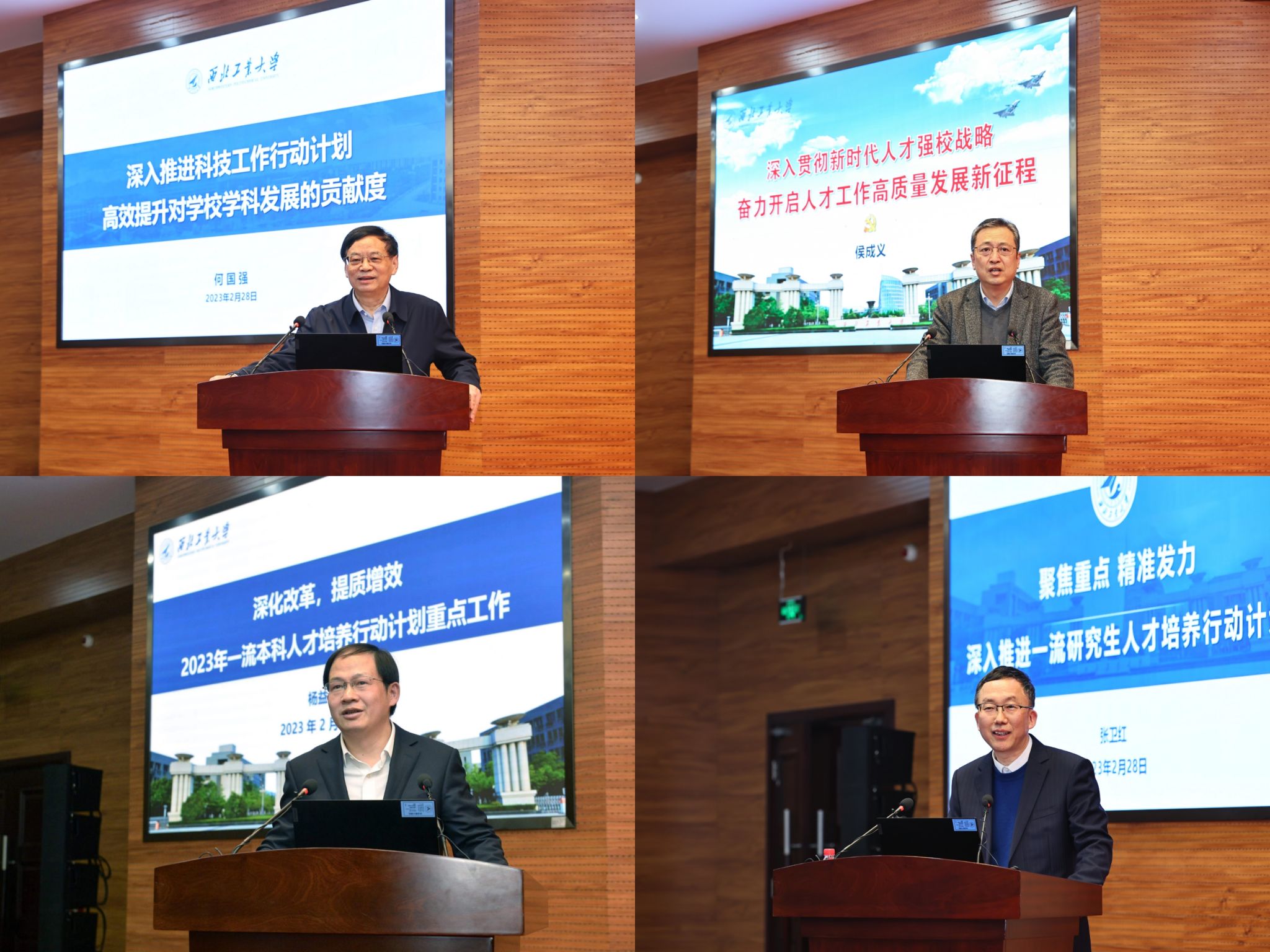 学校党委常务副书记程基伟介绍了2023年学校工作要点制定的背景和意义,从“强化创新理论武装,坚定拥护‘两个确立’、坚决做到‘两个维护’”“强化统筹协调,致力提升一流本科人才培养质量”“聚焦协同发力,着力打造一流研究生人才培养体系”“坚持‘四个面向’,不断提高学科建设和科学研究水平”“深化人事制度改革,推动人才工作高质量发展”“对接国家需求,高水平服务国家和区域经济社会发展”“拓展开放办学,深化国际交流与合作”“提升治理水平,增强师生获得感和幸福感”“以政治建设为统领,坚持和加强党的全面领导”等九个方面系统解读了今年学校的重点工作任务。他强调,2023年学校要坚持以习近平新时代中国特色社会主义思想为指导,将学习宣传贯彻党的二十大精神作为首要政治任务,坚持为党育人为国育才,以“四个行动计划”为载体,聚力、担当、落实,全力推动党的建设、人才培养、师资队伍、科学研究再上新台阶,以高质量内涵式发展扎实推进中国特色世界一流大学建设。