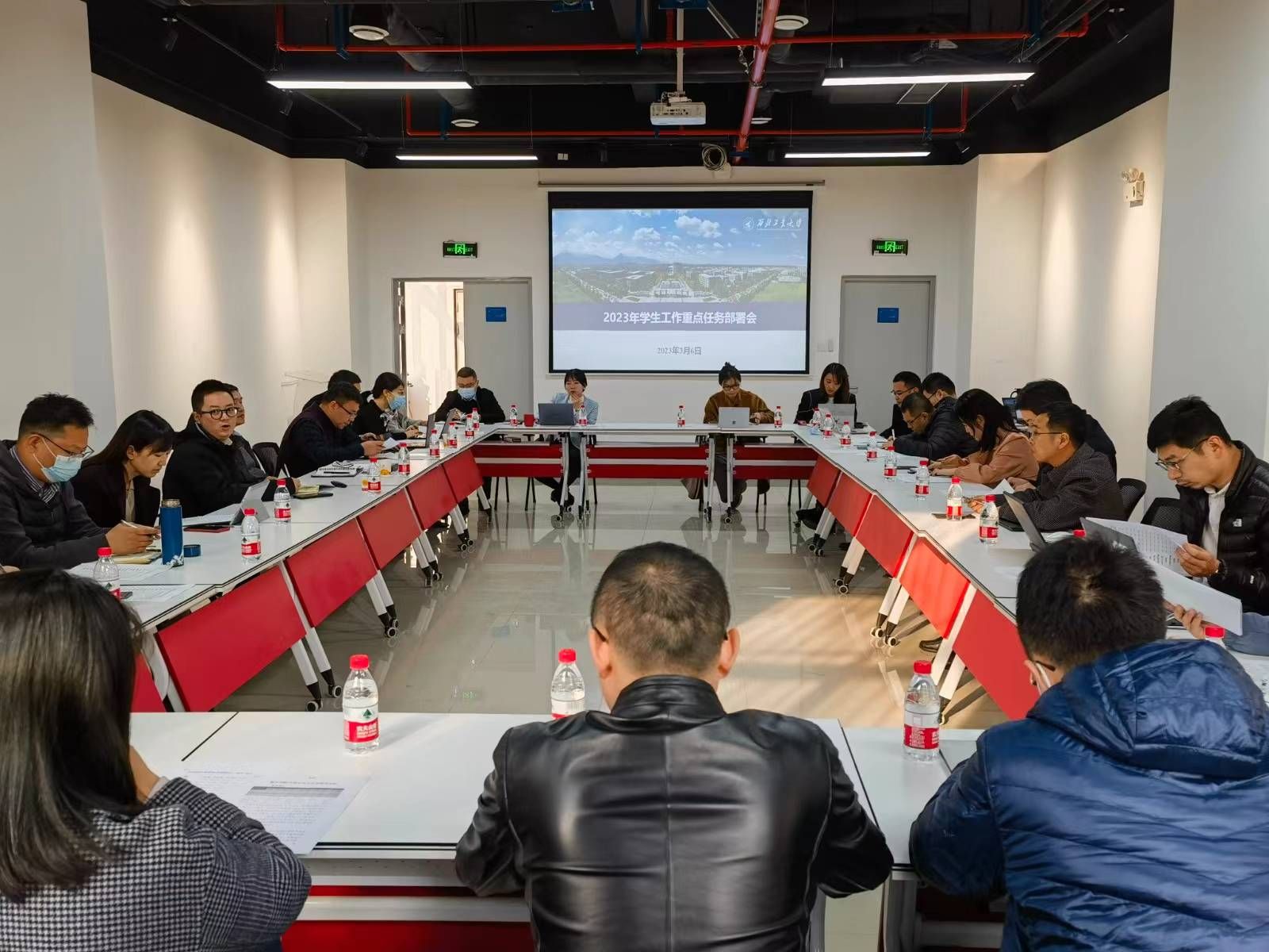 BEAT365英国官网新闻网3月9日电(党委学生工作部)为贯彻落实学校新学期干部大会的安排部署,推进学校2023年工作要点和四个“行动计划”的落地落实,推动学生工作高质量内涵式发展,2023年3月6日,学校召开了2023年学生工作重点任务部署会。副校长詹浩、党委学生工作部部领导和各学院负责学生工作的副书记参加会议。会议由党委学生工作部部长吴闻川主持。