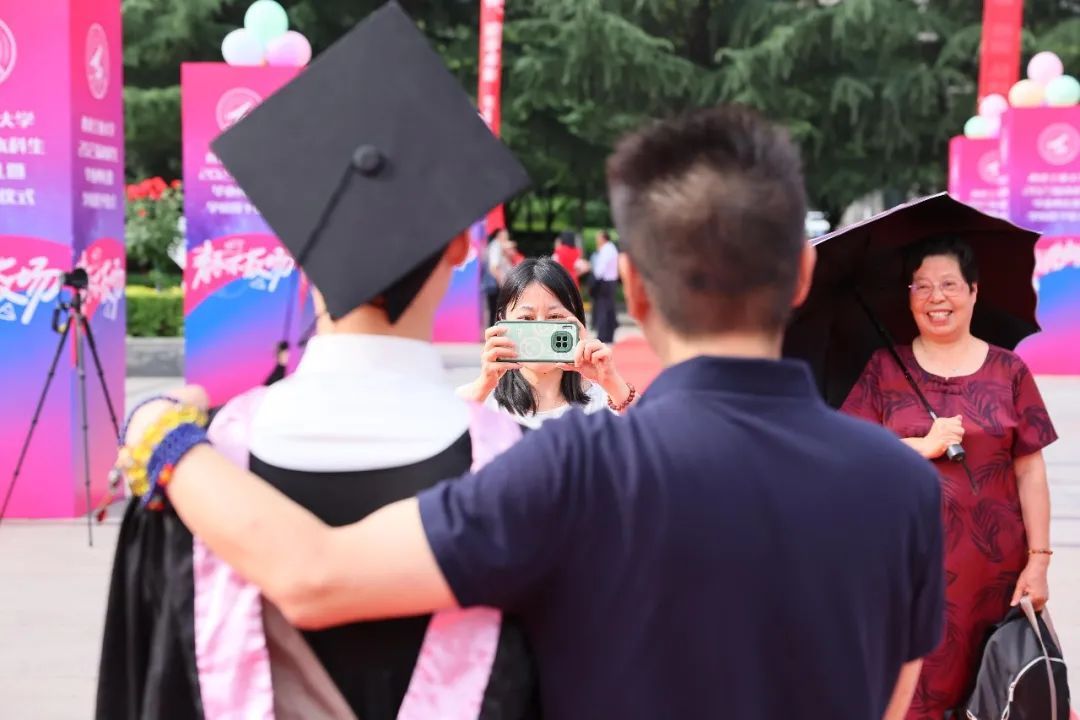 传播知识、传播思想、传播真理,塑造灵魂、塑造生命、塑造新人。四年间,恩师用谆谆教诲指引我们前进的方向,呵护我们向阳生长。教师代表力学与土木建筑学院张娟老师、辅导员代表动力与能源学院徐福厚老师、班主任代表电子信息学院何建华老师、餐厅员工代表王荣荣老师、学生公寓管理员代表陈福香老师、保卫处代表李文博老师、校医院医生代表盛秋老师、校车驾驶员代表李玉平老师、家长代表彭鹏女士等来到典礼现场,毕业生向他们献上鲜花,感谢师长、家人们的辛勤付出和深切关怀。