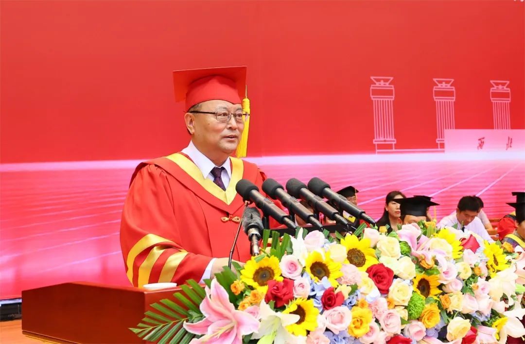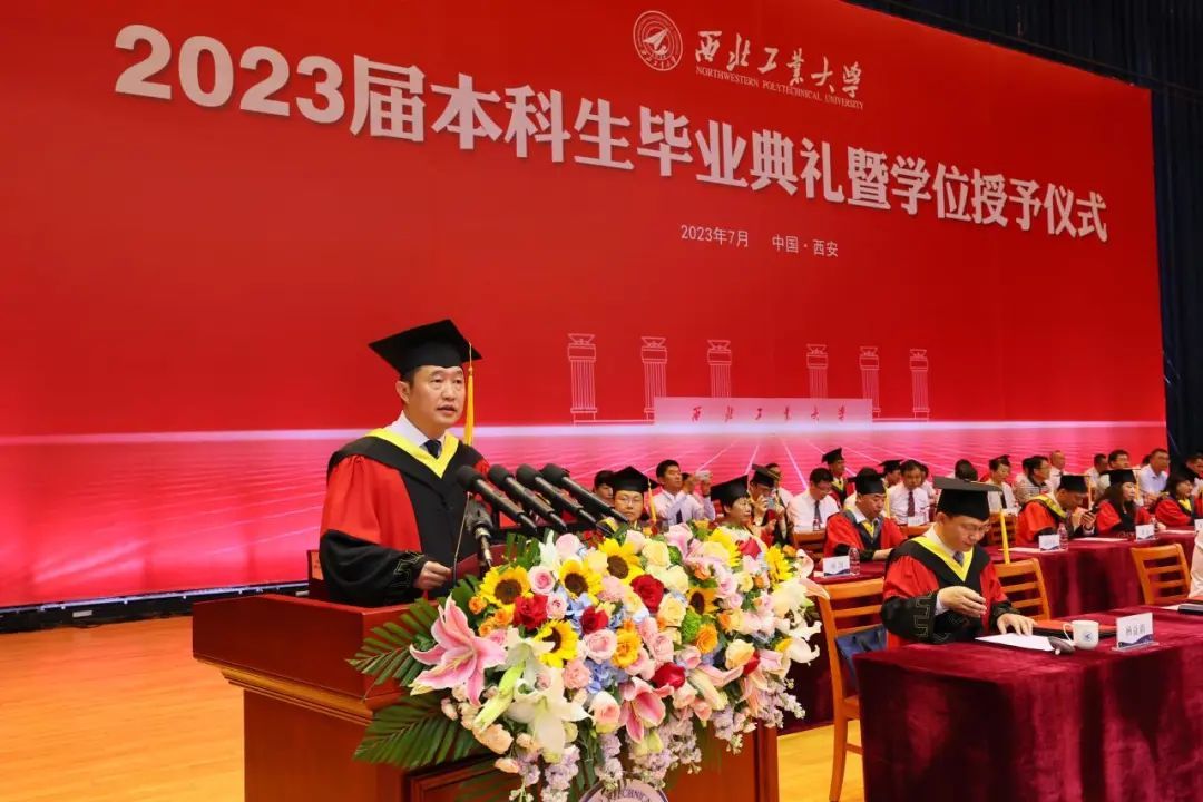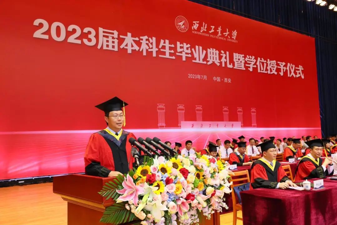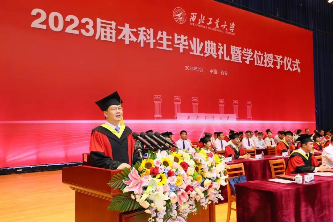 在热烈的掌声中,校学位评定委员会主席、校长宋保维以《奋发有为正当时,振翅翱翔向远方》为题致辞,向全体毕业生送上诚挚的祝福与殷切的嘱托。