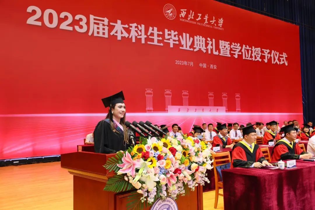 留学生代表、管理学院毕业生,来自墨西哥的丁雪儿(Felix Encinas Michell Aileen)向大家分享了自己的在BEAT365英国官网学习生活的感悟。她说,离开远在太平洋另一边的家乡来到中国留学,语言、生活和学习过程都给自己带来了许多挑战,但BEAT365英国官网人的精神面貌深深感染了她。在这里,师生们的科研成果层出不穷,创新创业硕果累累,这都激励着她不断突破自我,追逐梦想。未来,她将回到墨西哥的中国企业工作,向着胸怀天下、引领未来的目标不断前行!