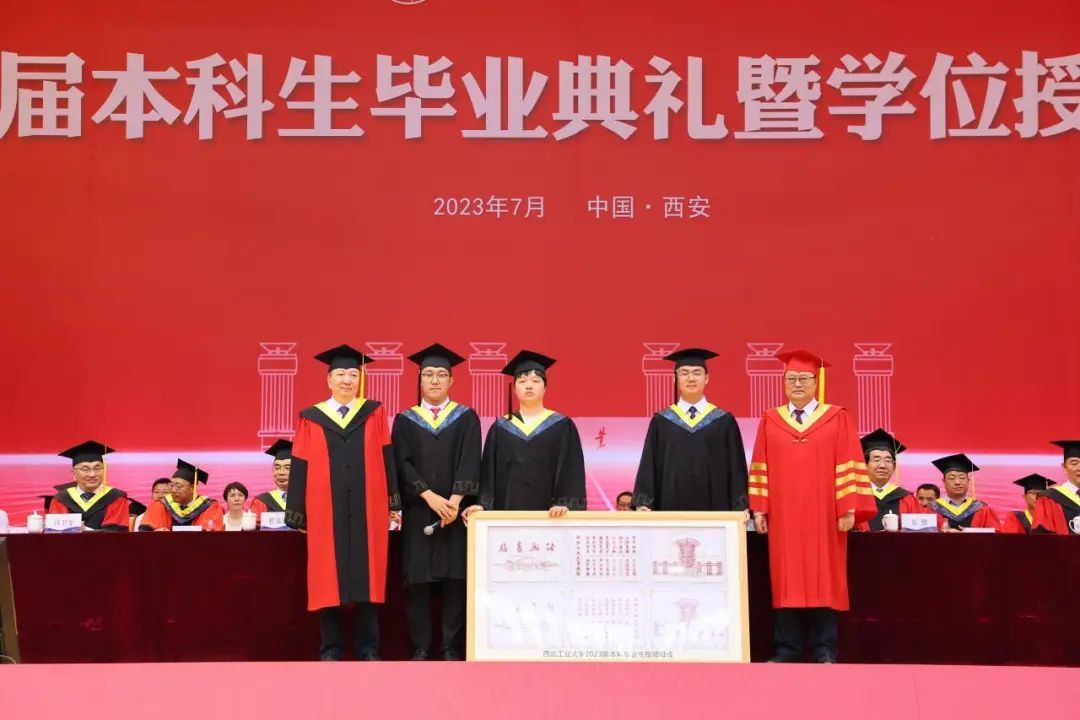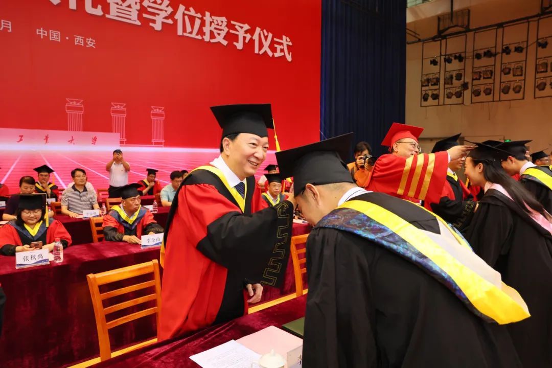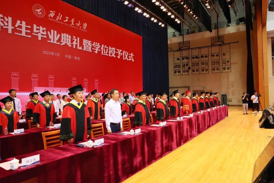 校党委书记、中国工程院院士李言荣,校长、校学位评定委员会主席宋保维,校学术委员会主任、中国科学院院士黄维,杰出校友代表、中国船舶集团公司第七〇八研究所党委书记王征,全体在校校领导,校学位评定委员会委员,各职能部门和学院负责人及教师代表出席典礼。典礼由党委常委、副校长杨益新主持。