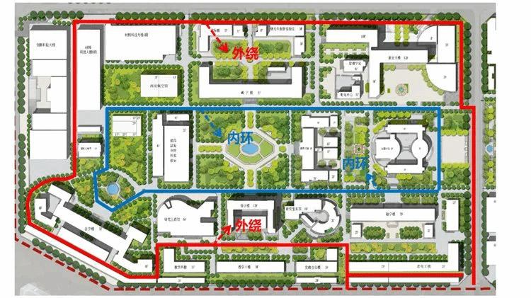 学校办公室牵头保卫处、发规处、信息化处等单位围绕“内环外绕”工程,对教学区现有交通布局进行调整,采取分时管理、分区域管理、分时段管理的“三分”管理策略,施行“人员引导、设备引导、技术引导”相结合的车辆管理机制,以改善校园道路车辆拥堵无序的问题。