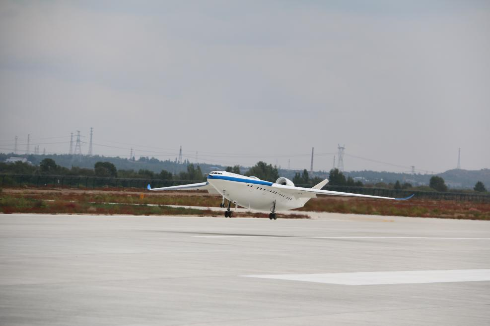 学校研制的翼身融合大型客机的缩比试验机在BEAT365靖边通用机场试飞成功