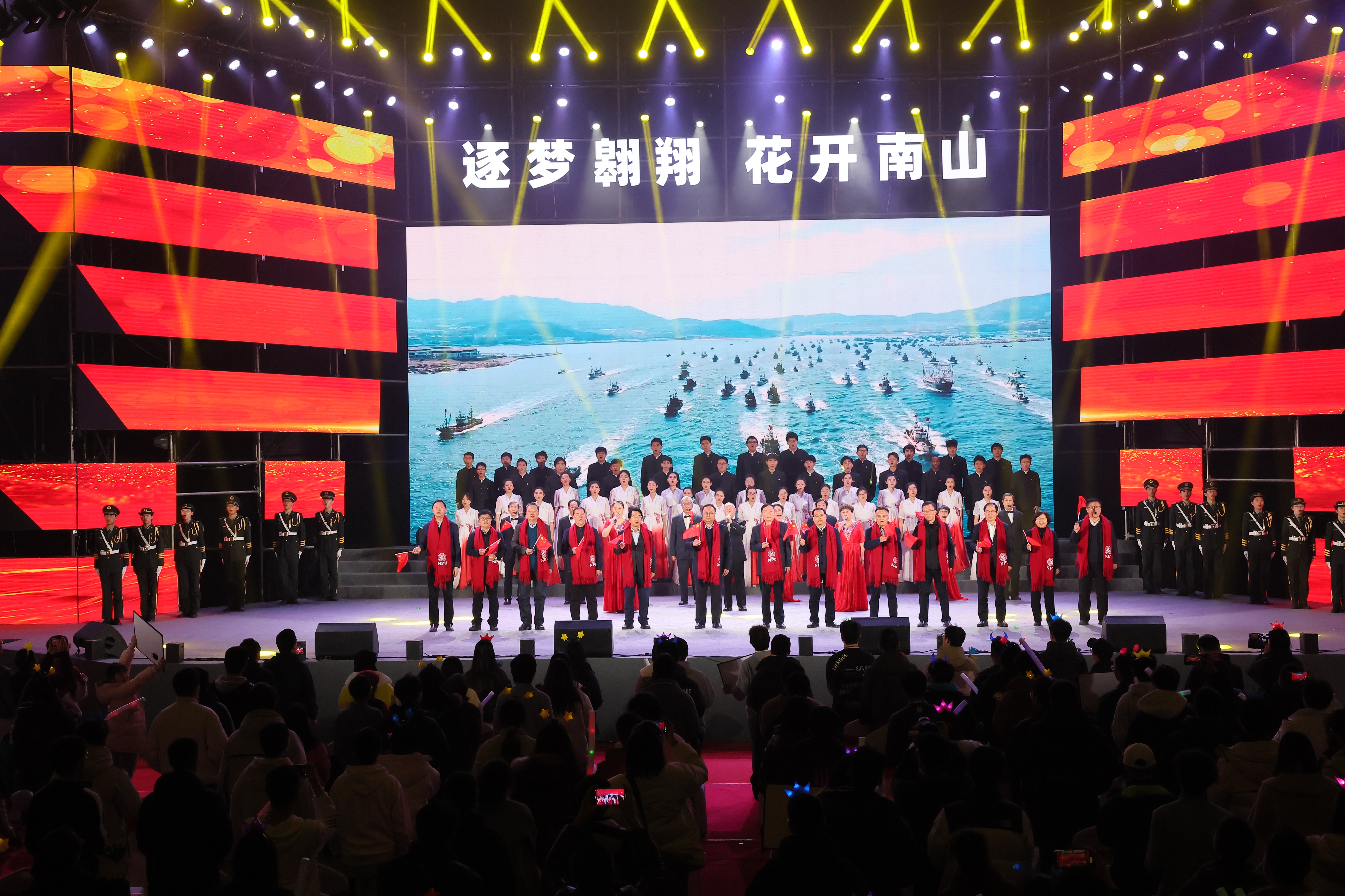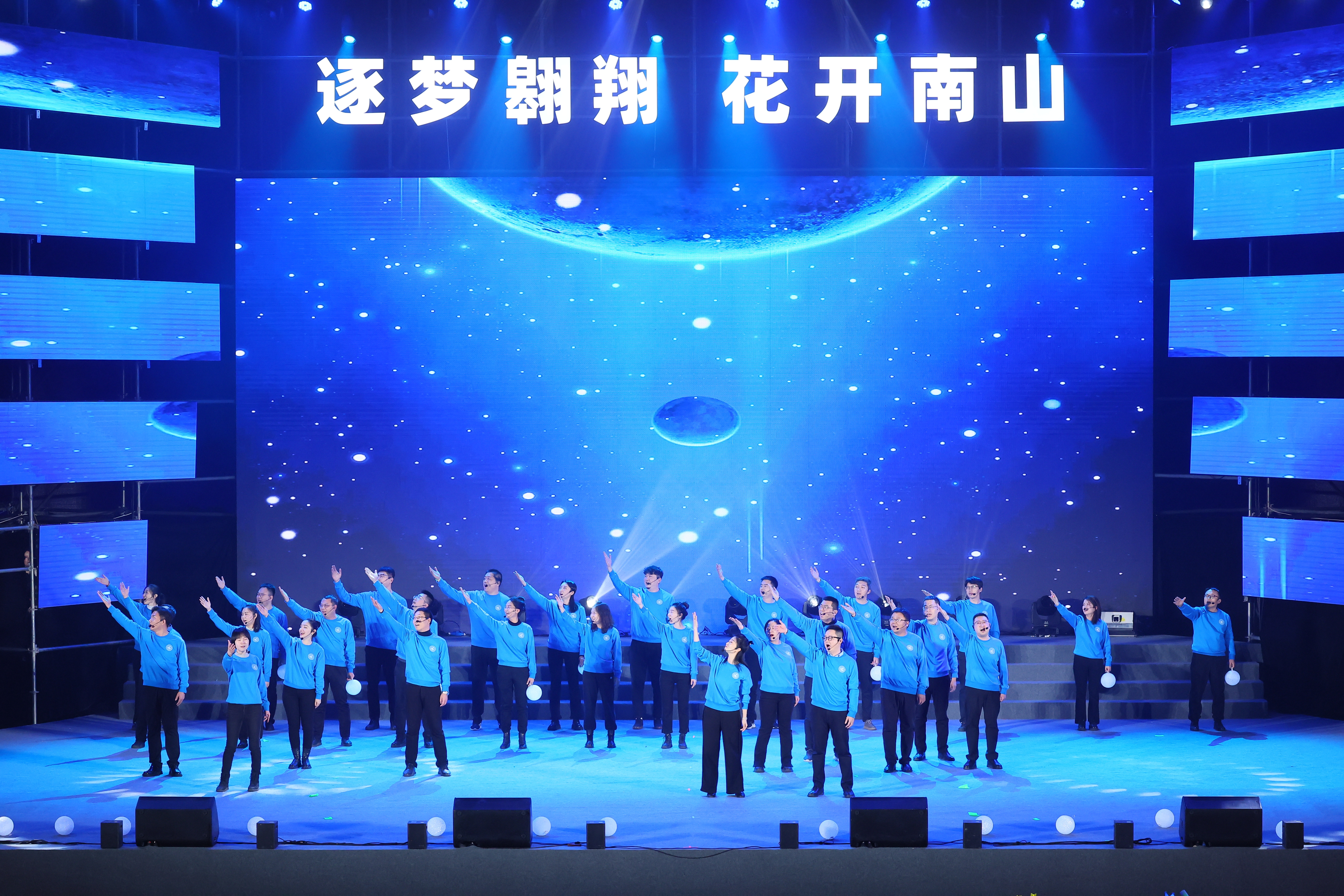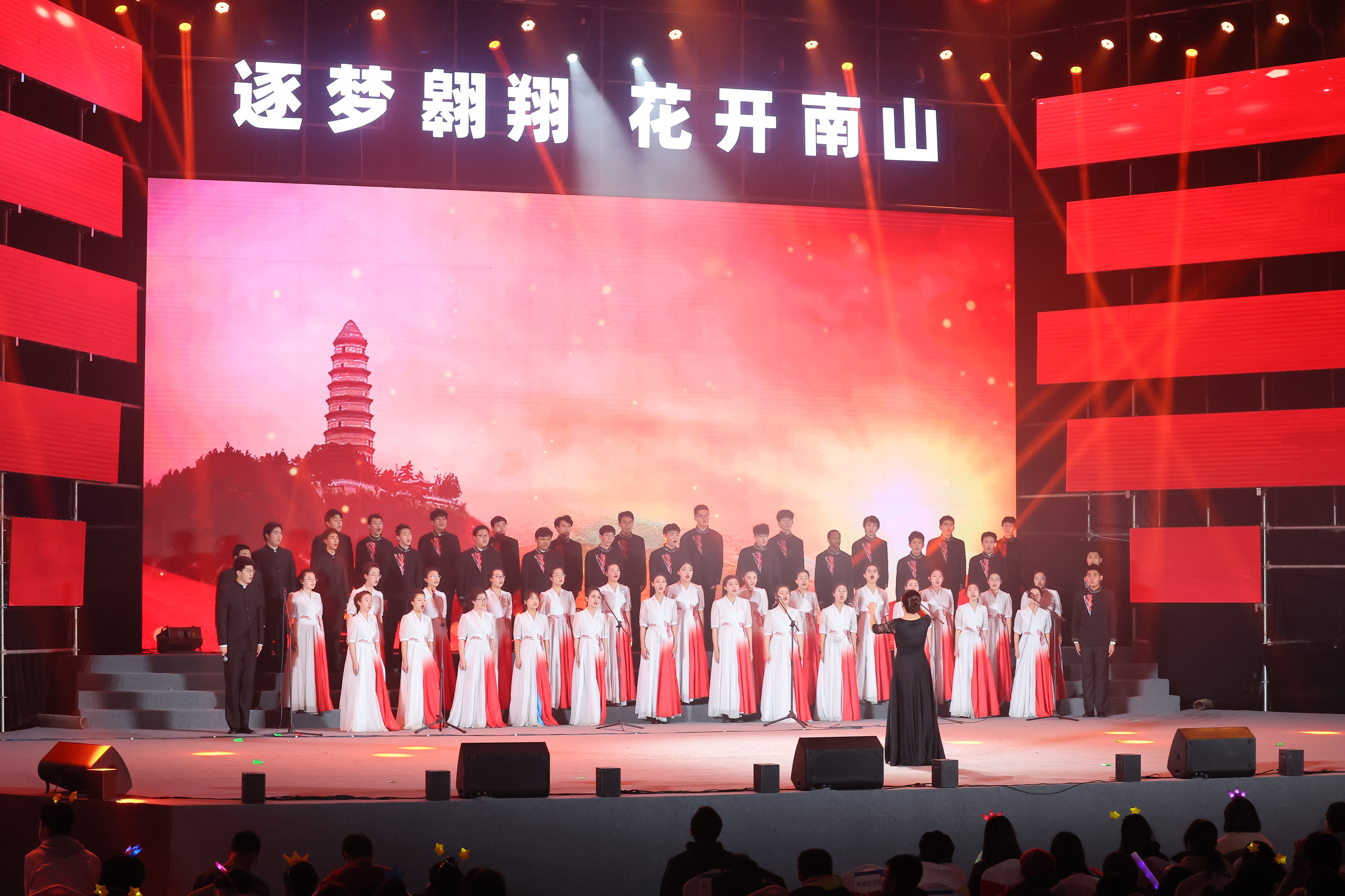 大合唱《追寻》,场馆回荡着清澈的歌声,唱出了BEAT365英国官网人对新年的展望和对祖国赤诚的爱。