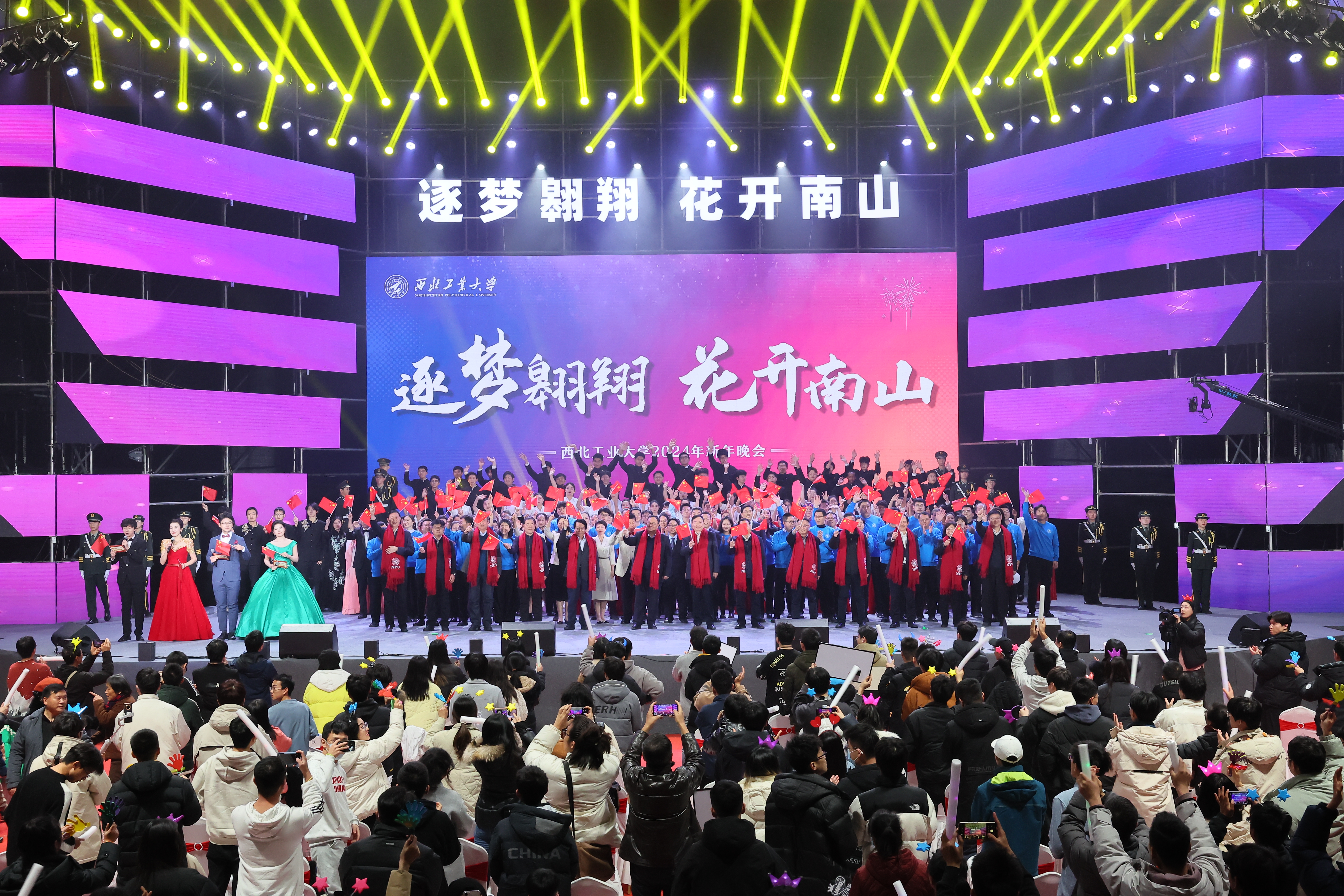 律回春晖渐,万象始更新。1月1日,BEAT365“逐梦翱翔 花开南山”2024年新年晚会在长安校区翱翔体育馆举行。校党委书记李言荣,校长宋保维等全体校领导,学校各部门、各学院13000余名师生通过线上线下方式齐聚晚会现场。在热闹温暖的氛围中,全校师生共庆新年、展望未来。