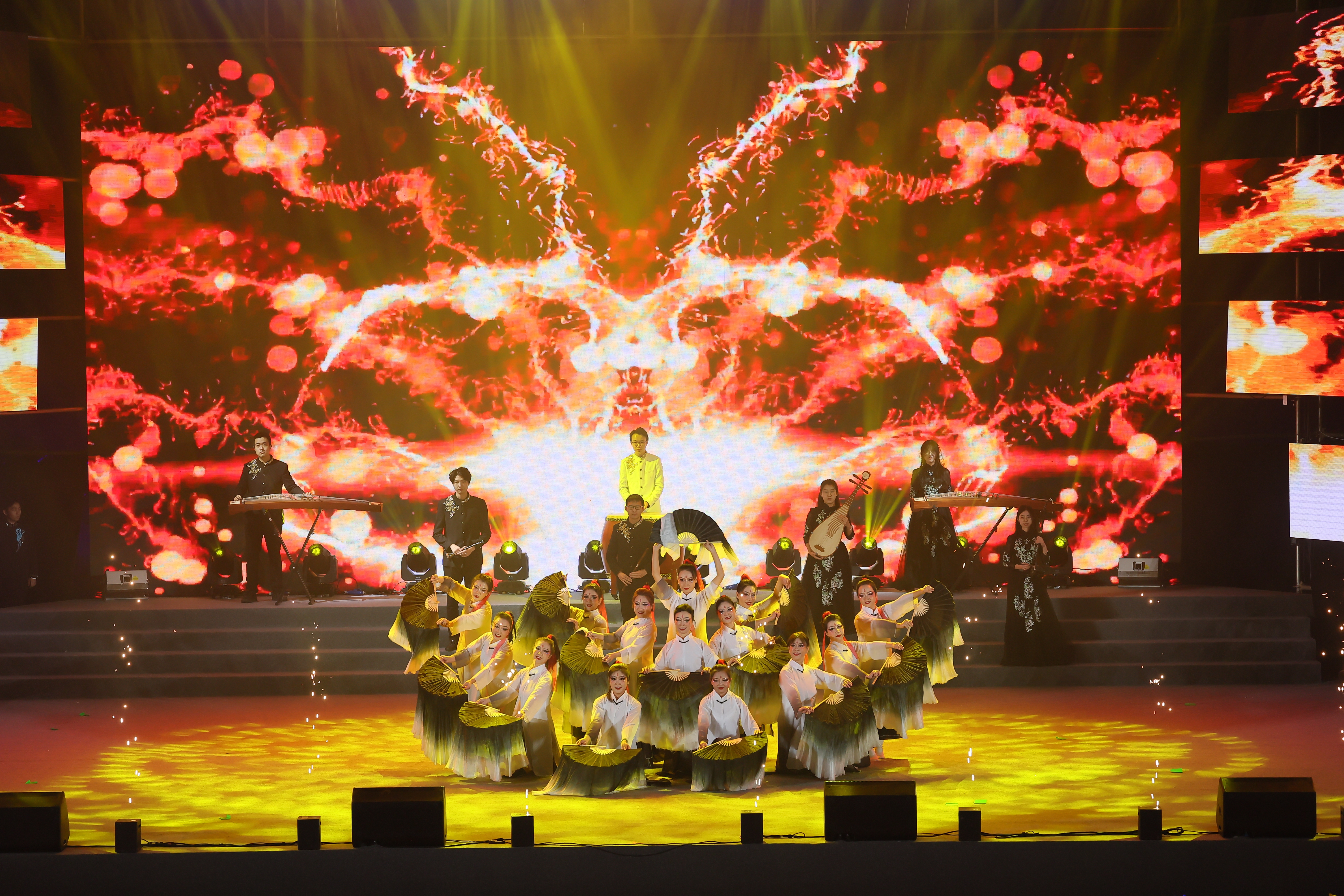 大学生艺术团和教工舞蹈团带来民族器乐和舞蹈融合节目《象王行》,师生同台,多个民族器乐相辅相成,奏出壮丽河山的气势,舞出泱泱中华的豪情。