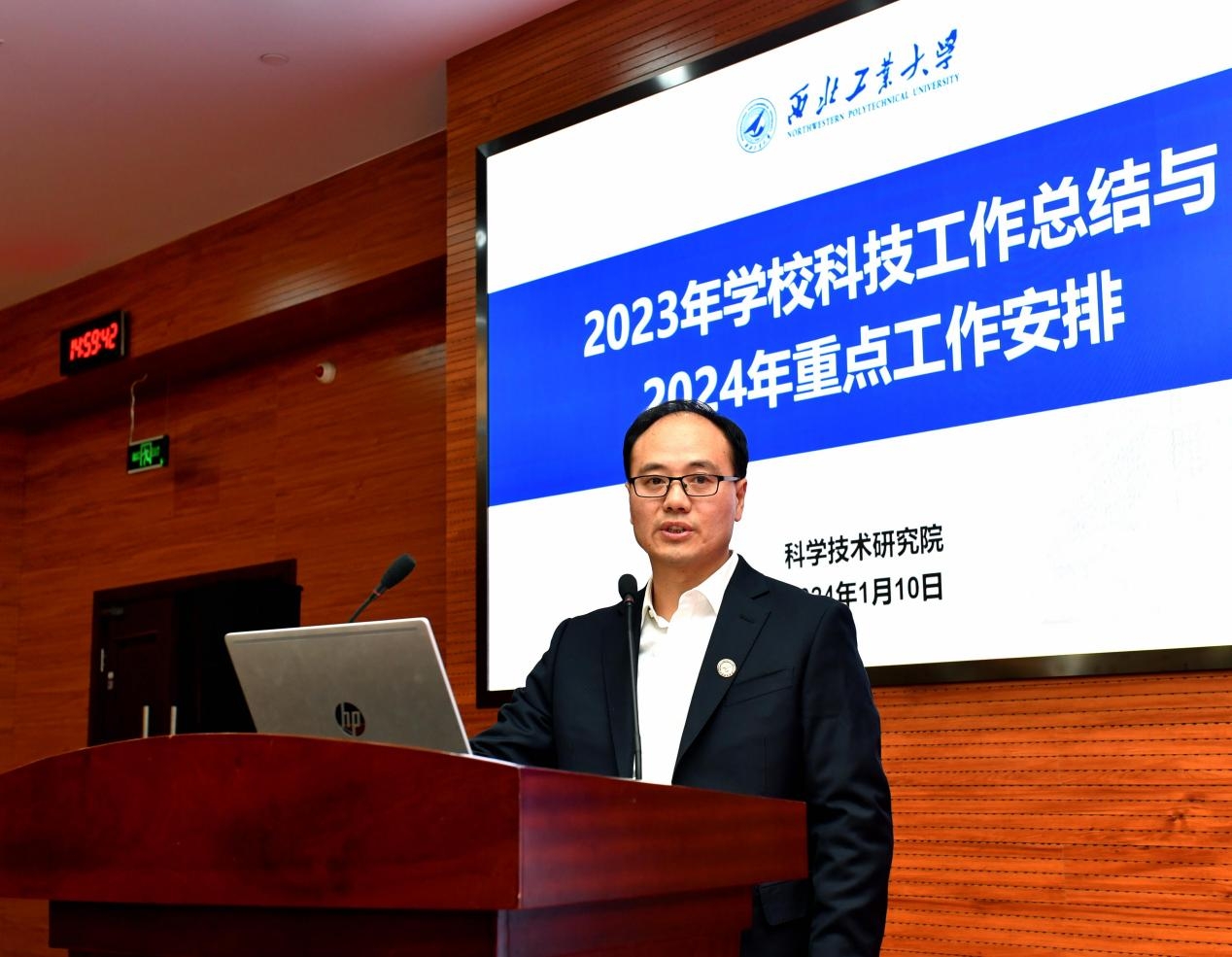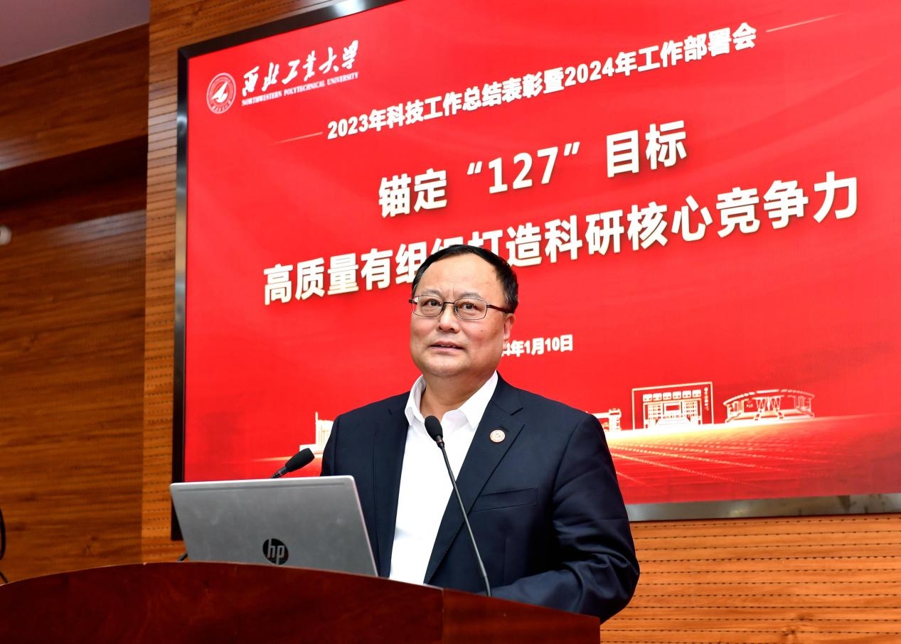 1月10日,学校召开2023年科技工作总结表彰暨2024年工作部署会。党委书记李言荣,校长宋保维出席大会。校学术委员会主任委员黄维院士、副主任委员李贺军院士,学校相关职能部门负责人,学院(研究院)主要负责人和分管科研领导,学校国防科技专家组组长和副组长,科研贡献奖励获奖项目团队和教师代表等参加会议。大会由副校长张开富主持。