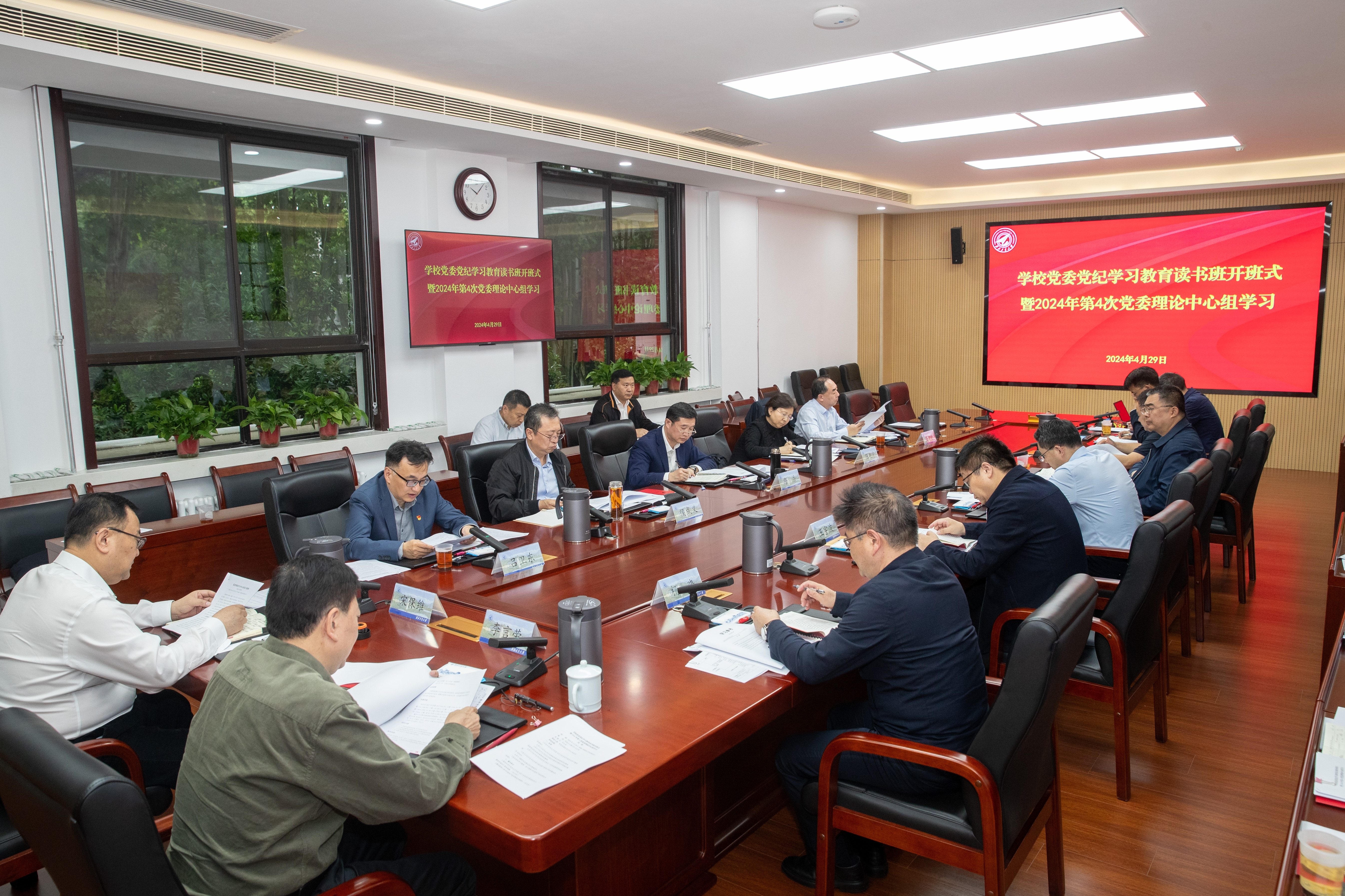 4月29日上午,学校党委举行党纪学习教育读书班开班式暨2024年第4次党委理论中心组学习会,深入学习贯彻习近平总书记关于党纪学习教育的重要讲话和重要指示精神,认真学习新修订的《中国共产党纪律处分条例》,并围绕相关内容开展交流研讨。读书班由校党委书记李言荣主持。