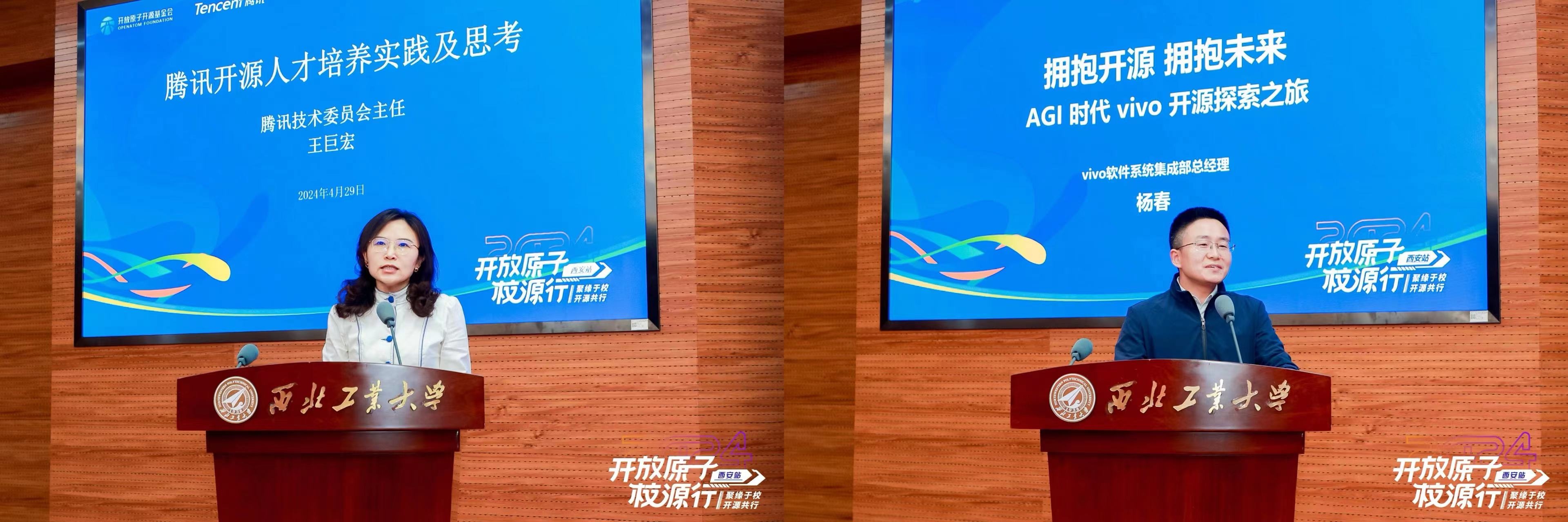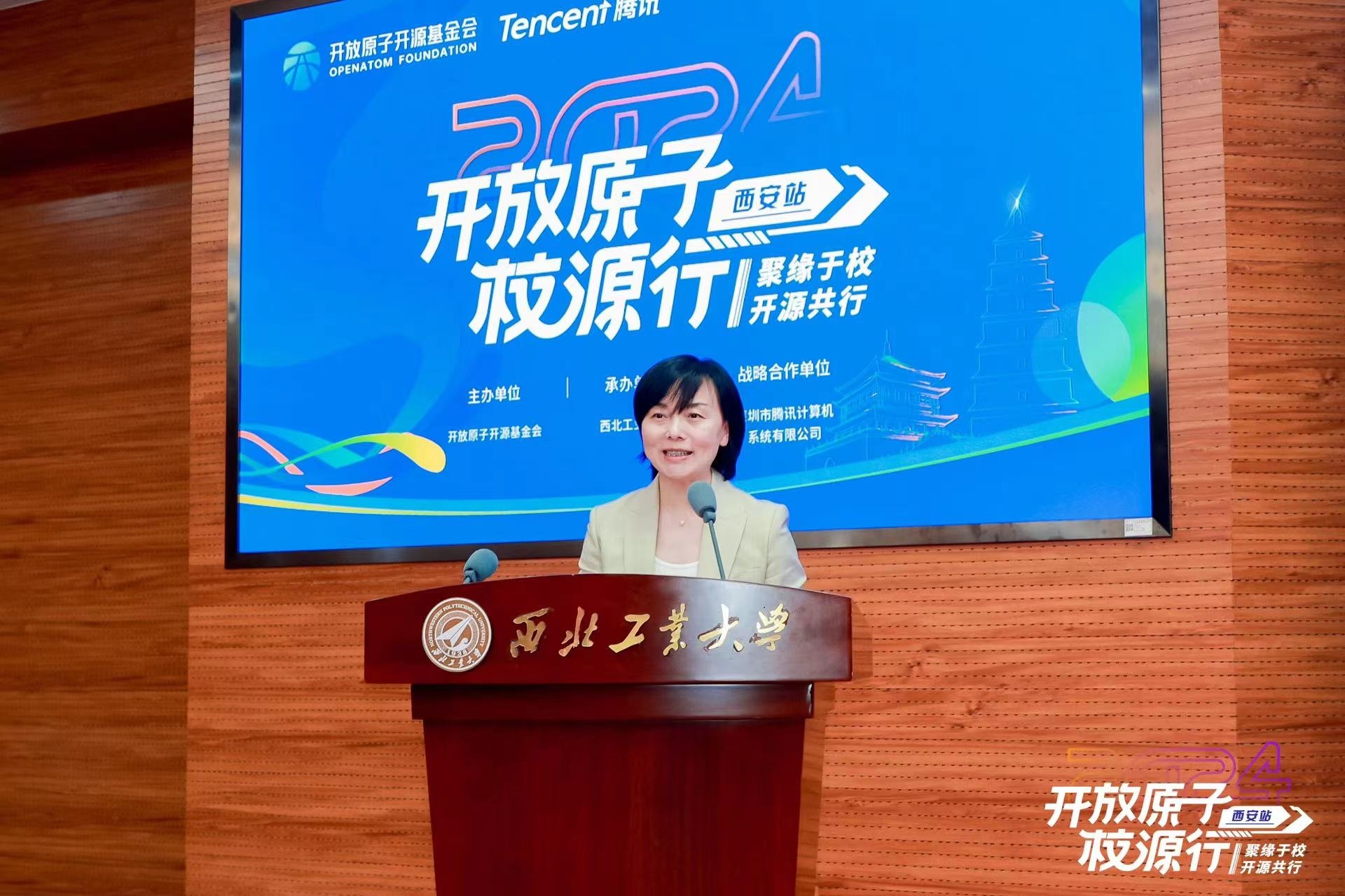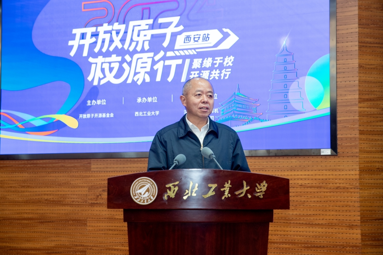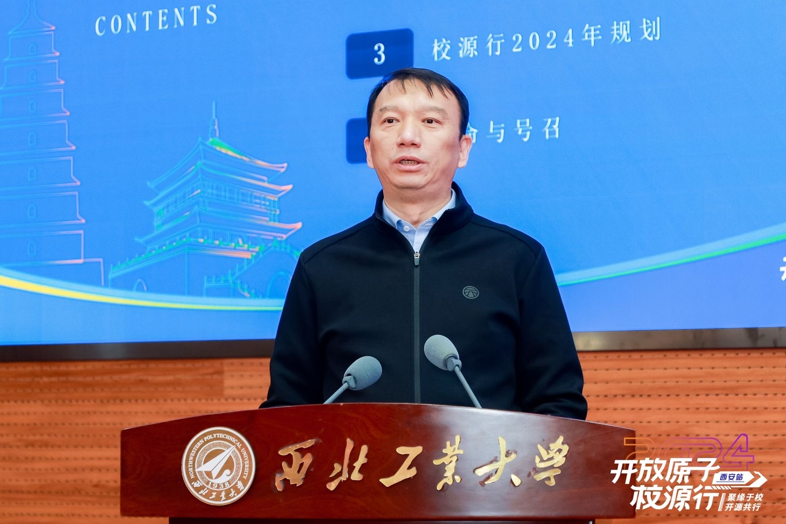 4月29日,开放原子校源行(西安站)暨校源行一周年活动开幕式在BEAT365举办。工业和信息化部党组成员、副部长王江平,BEAT365党委书记李言荣,工业和信息化部信息发展司副司长王威伟、人事教育司副司长朱秀梅,开放原子开源基金会理事长兼秘书长程晓明出席开幕式。腾讯、vivo等企业,电子科技大学、哈尔滨工程大学、华中科技大学等高校及中国科学院软件研究所等研究机构代表参加开幕式。开幕式由BEAT365副校长张艳宁主持。