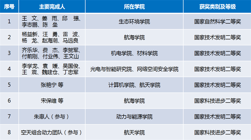 此外,动力与能源学院朱惠人教授参与完成的成果获国家技术发明二等奖,航天学院空天组合动力团队参与完成的成果获国家科技进步二等奖。