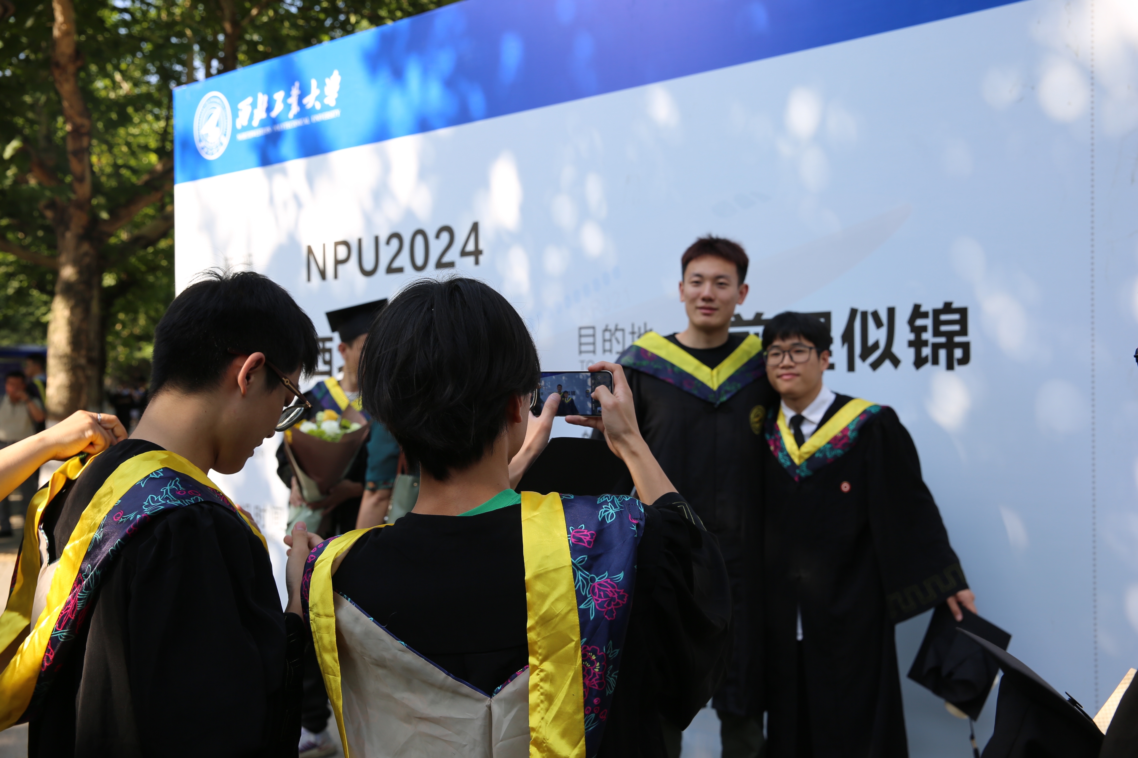 学校在翱翔体育馆西侧马路设置了拍照打卡框和展板,让同学们与师长、亲友留念,用相机定格下这珍贵时刻。