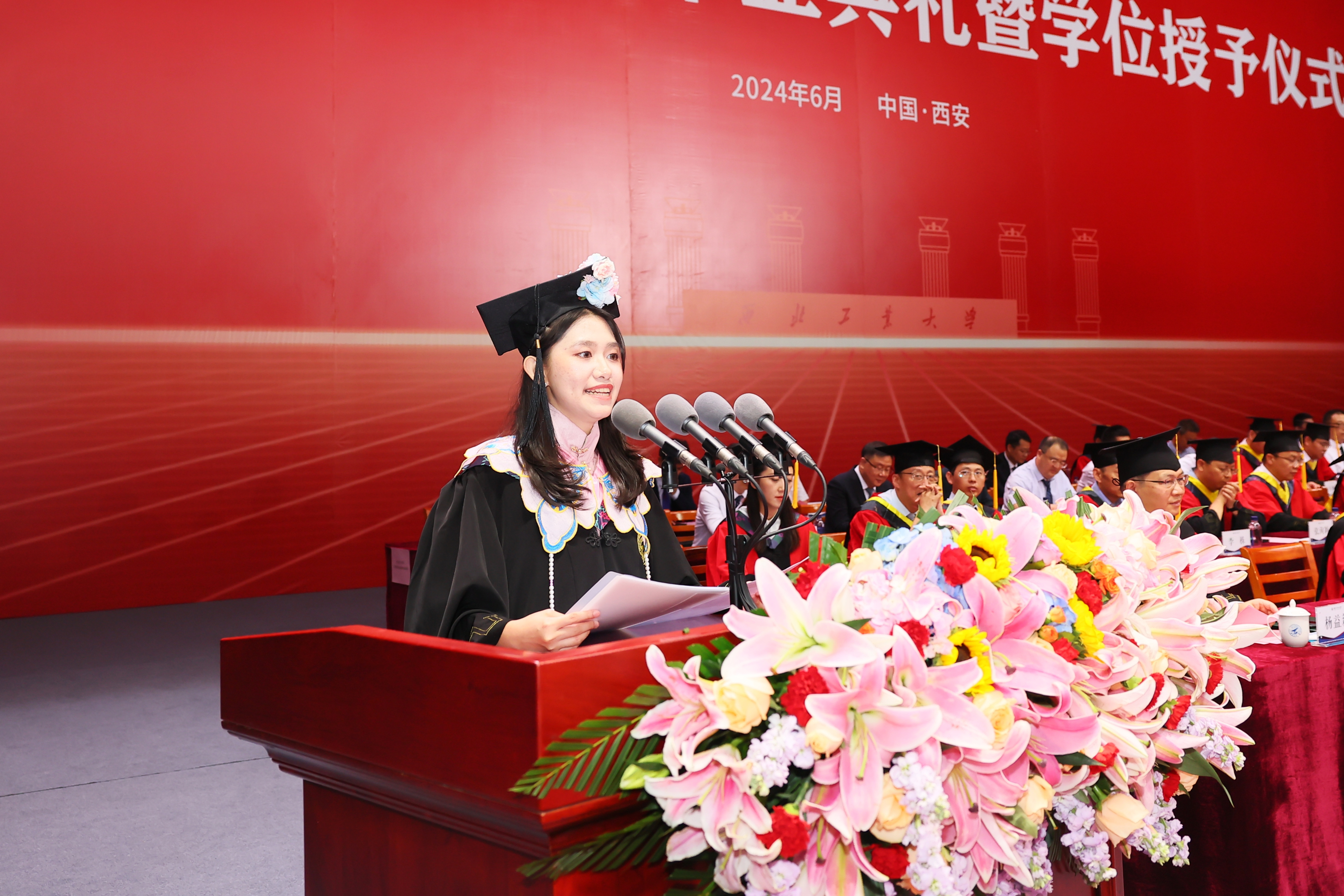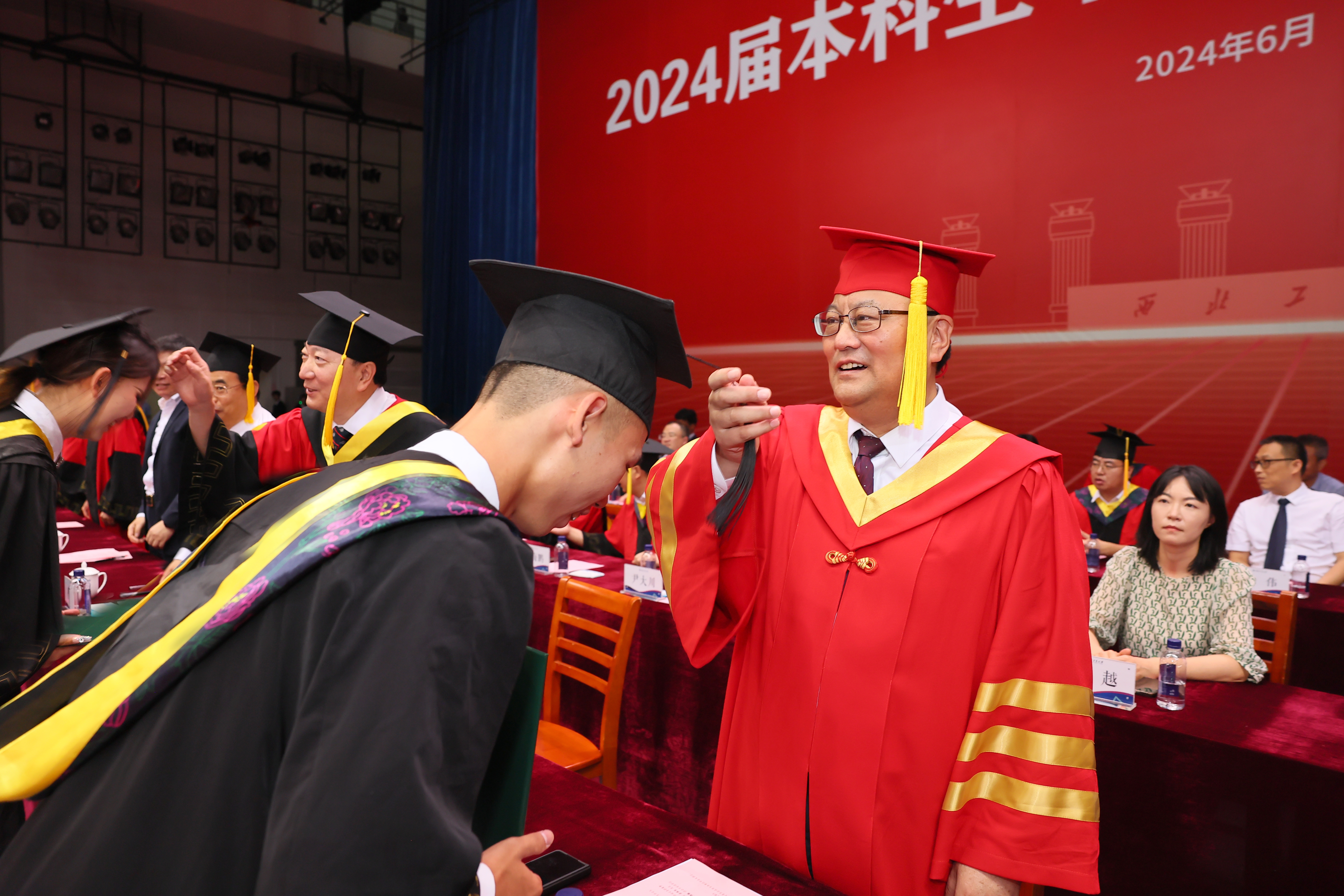 在全场热烈的掌声中,校长、校学位评定委员会主席宋保维院士代表全校师生员工、代表李言荣书记,向同学们圆满完成本科阶段学业表示诚挚的祝贺!向辛勤付出的老师和家人们致以衷心的感谢!并以《奋勇而上,逐光而行》为题向毕业生们送上毕业致辞。