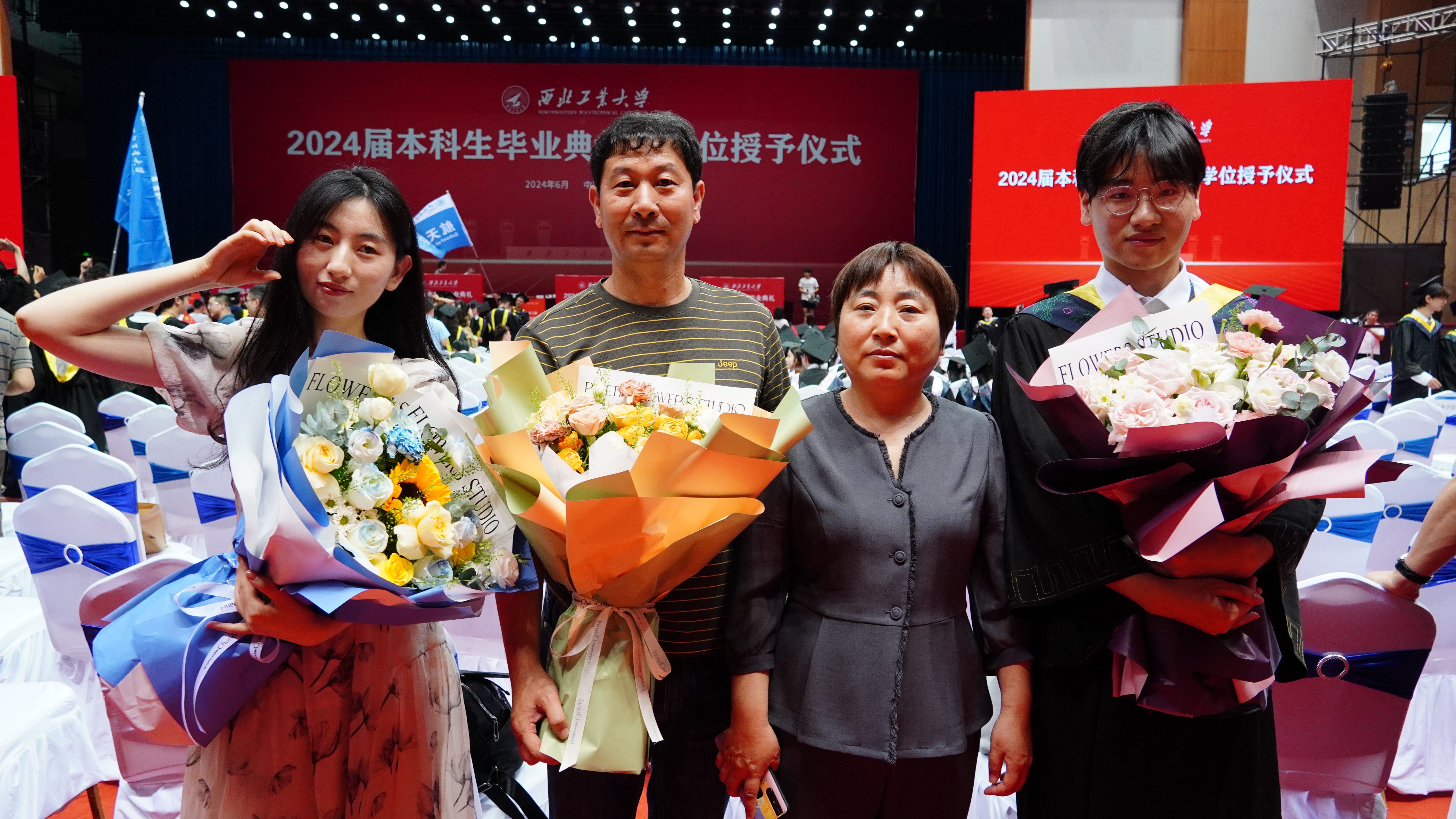 在四年的本科求学旅程中,尽心暖心、贴心知心的师长们,一路陪伴着同学们逐梦奔跑,见证了同学们的点滴成长。典礼现场还特别邀请到了教师代表航空学院赵美英老师、辅导员代表公共政策与管理学院刘锦林老师、班主任代表力学与土木建筑学院林红娇老师、餐厅员工代表冯可利老师、学生公寓管理员代表冀小兰老师、党委保卫部队员代表李旭老师、校医院医生代表王晓燕老师、校车驾驶员代表闫兴伟老师、家长代表材料学院刘苏瑶母亲张英超女士,毕业生代表向他们献上鲜花,感谢师长、家人们的辛勤付出和无私奉献。