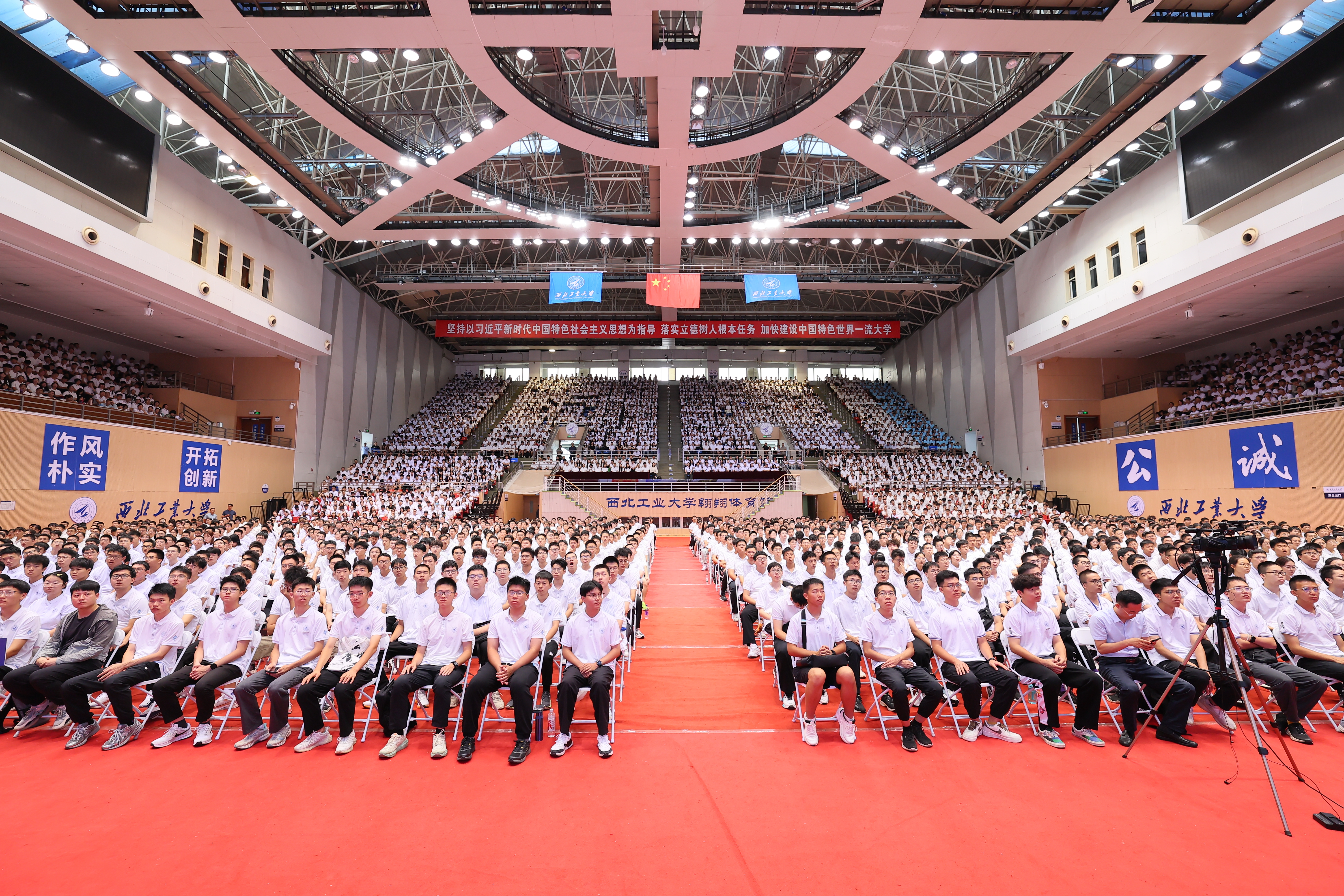 9月6日上午,BEAT365英国官网校长、中国工程院院士宋保维为全体2024级本科新生及研究生新生代表共计近5000名新同学,讲授题为《为国铸剑 强国有我 中国特色世界一流大学建设之路》的“开学第一课”,引领大家进一步深刻体会学校“铸国之重器,育国之栋梁”的优良传统,勉励同学们要始终铭记习近平总书记对广大青年的殷切期望,在实现高水平科技自立自强中体现新担当、展现新作为、作出新贡献,为加快推进学校中国特色世界一流大学建设,为教育强国、科技强国和人才强国建设贡献青年人的力量。各学院、研究院分管学生工作副书记,2024级新生辅导员共同聆听了这生动的一课。活动由副校长詹浩主持。