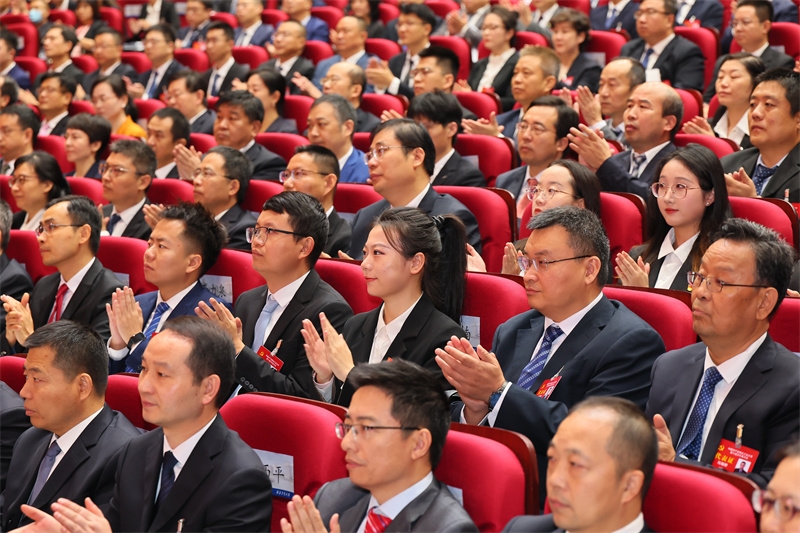 聆听李言荣同志所作的报告,大家边听边记,不时热烈鼓掌。