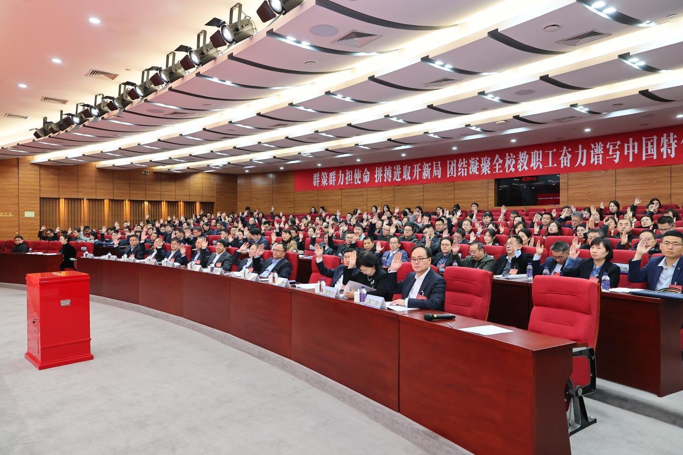 副校长、工会主席岳晓奎作工会工作报告,全面总结了过去五年工会工作取得的成绩,以及积累的四条基本经验:一是必须坚持和加强党的全面领导;二是必须紧紧围绕中心、服务大局;三是必须持续深化工会改革和建设;四是必须密切联系教职工,广泛凝聚改革发展合力。面对未来五年,他指出要深刻把握坚持党对工会工作全面领导的根本原则,深刻把握《教育强国建设规划纲要(2024-2035)》的实践要求,深刻把握学校“特色”与“高峰”的具体要求,踔厉奋发、担当作为,为学校建设发展贡献工会力量。